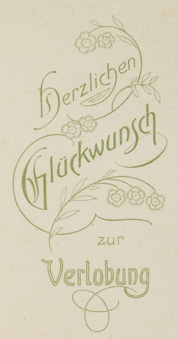 Unbekannt (20. Jahrhundert), Papierantiquität, Glückwunsch-Karte zur Verlobung, um 1900, Glückwunschbillet
