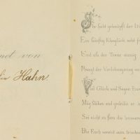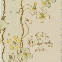 - Beschreibung: Schöne Glückwunsch-Karte zur Verlobung mit floralem Motiv sowie eingehängtem Doppelblatt und gedruckten Glückwünschen; handschriftliche Widmung mit Tinte. Verziert mit Glitter und Goldverzierungen.
