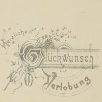 Unbekannt (20. Jahrhundert), Papierantiquität, Glückwunsch-Karte zur Verlobung mit Blumenschmuck, um 1900, Glückwunschbillet