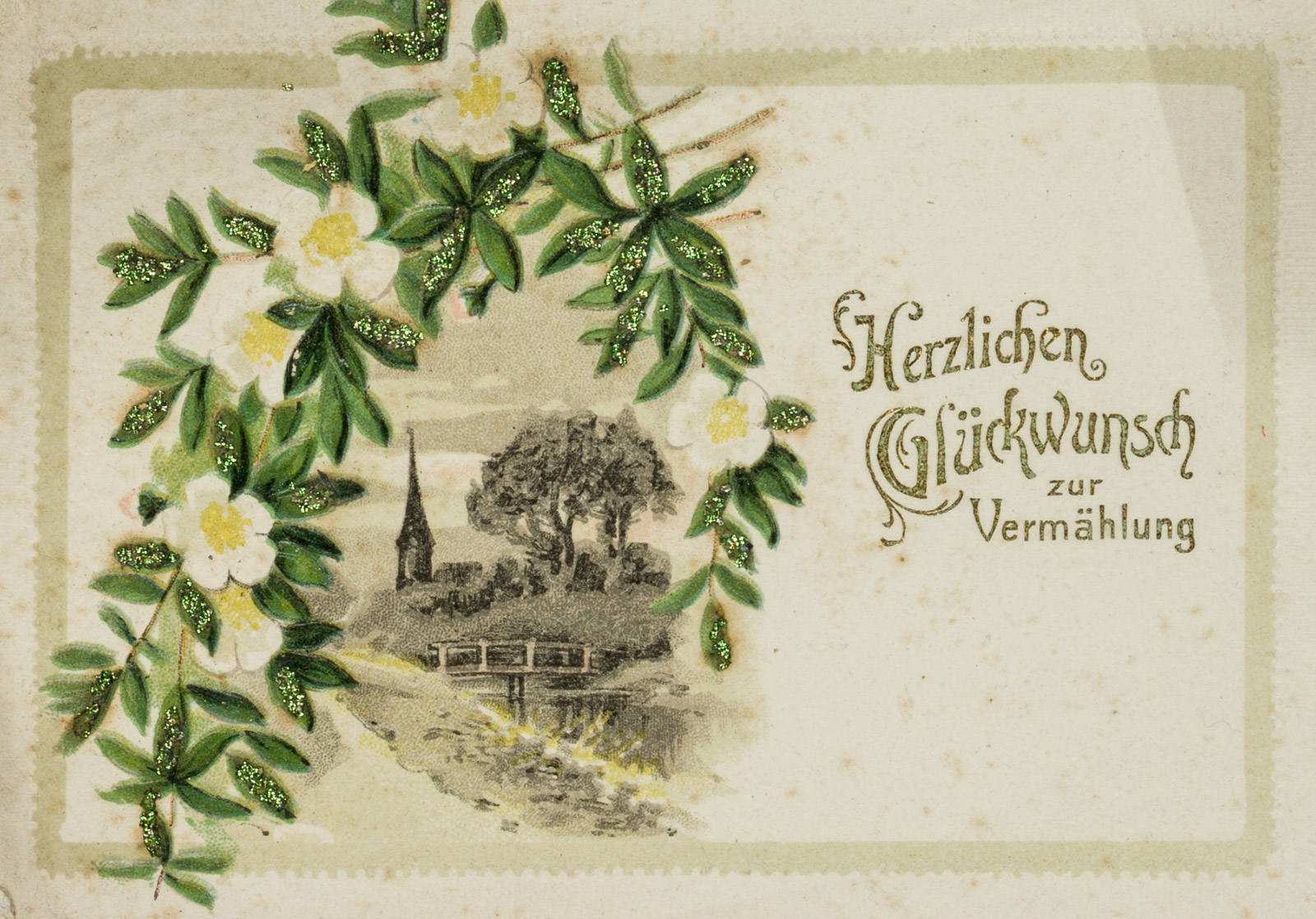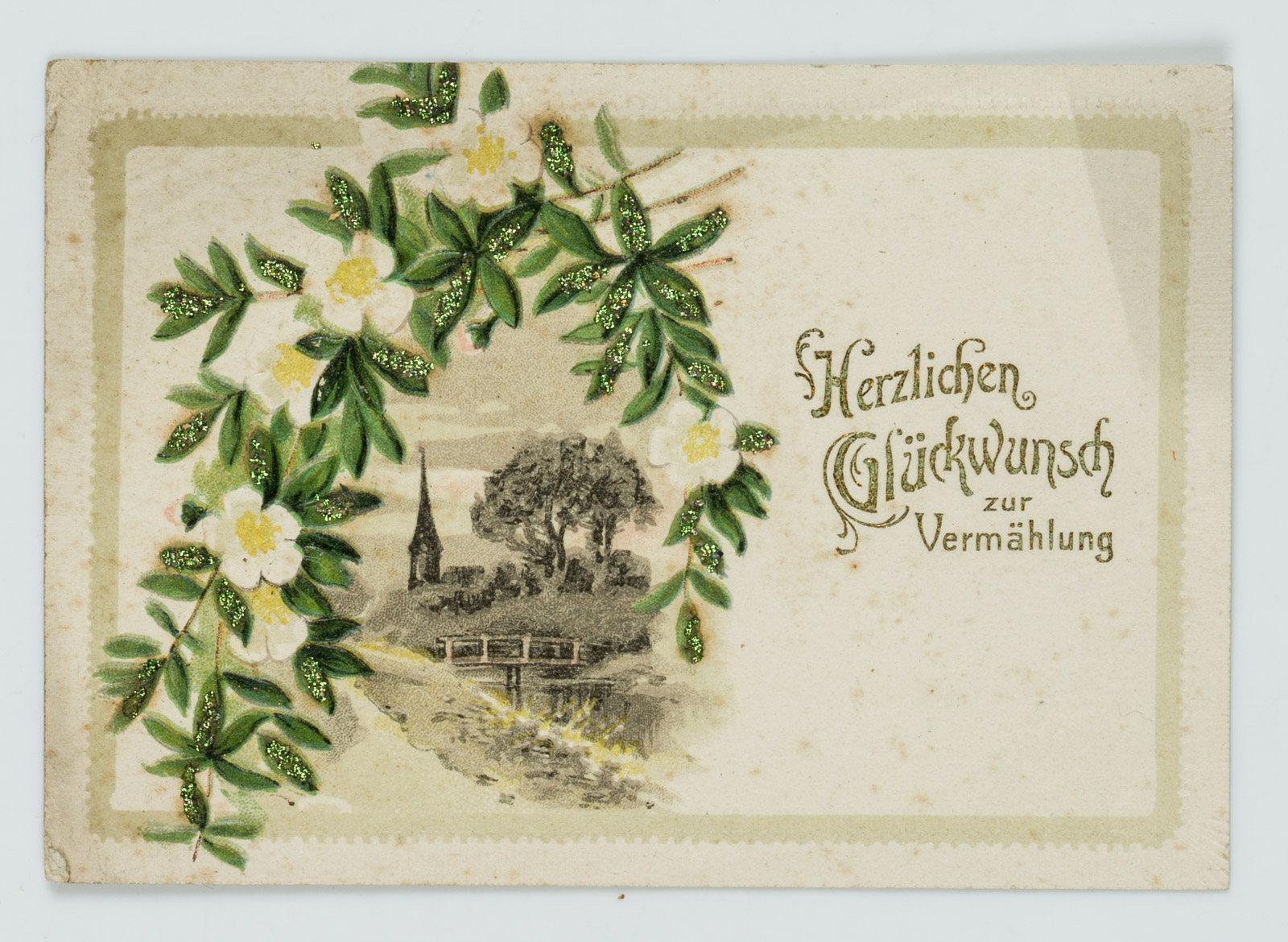 Unbekannt (20. Jahrhundert), Papierantiquität, Glückwunsch-Karte zur Vermählung, um 1900, Glückwunschbillet