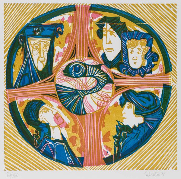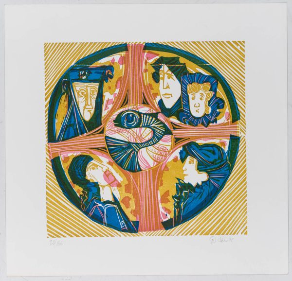Unknown (20th century), Circle with cross and figures, religious, 1978, Offset printing