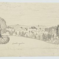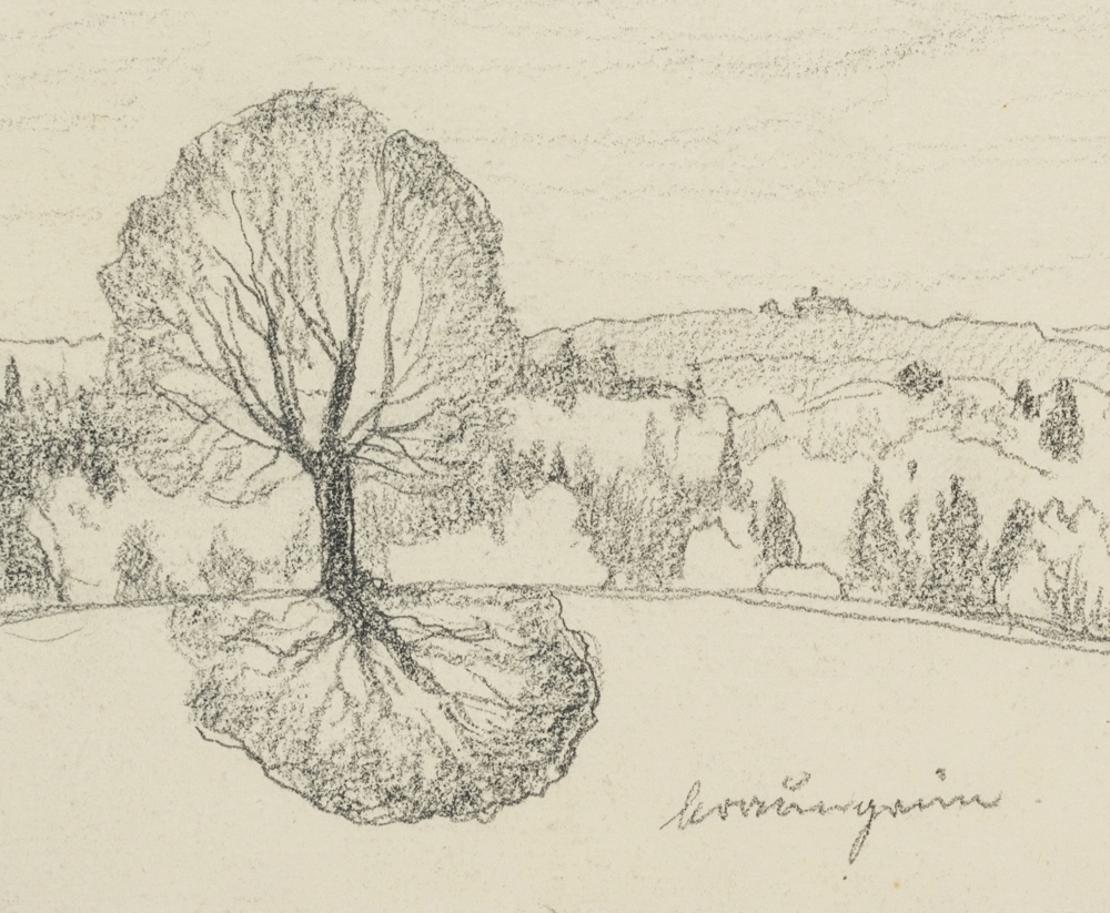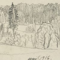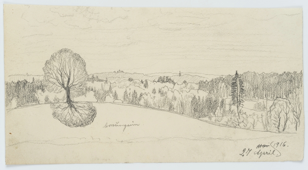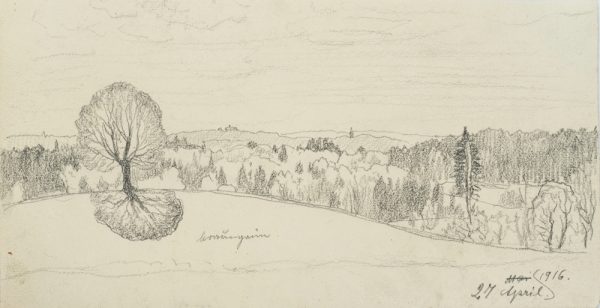 Unknown (20th century), Landscape study with wooded hills, 1916, Pencil
