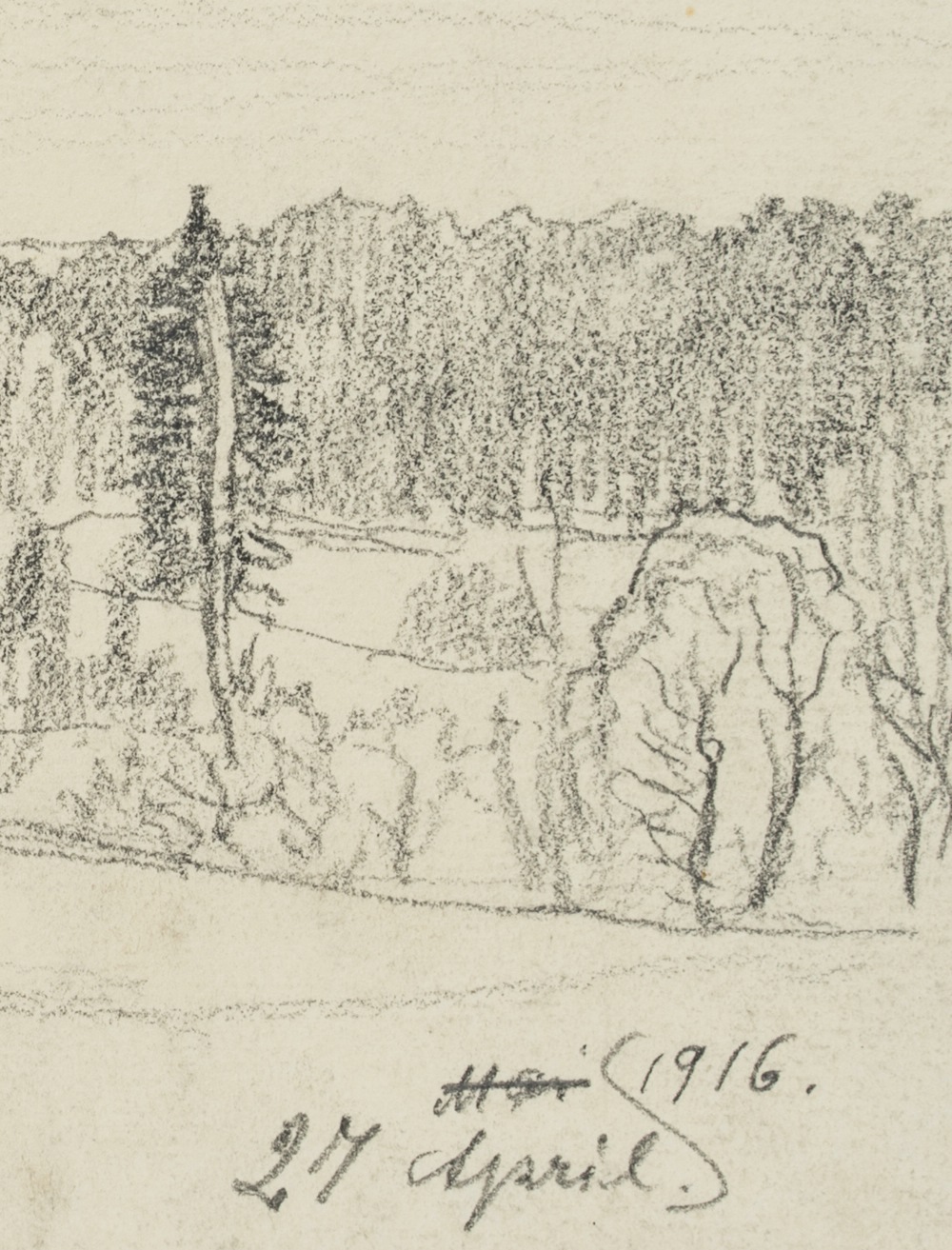 - Inscription: At lower right the sheet is dated “27 April 1916”, the date was obviously written on later by the artist and corrected again.