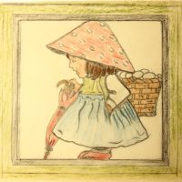 Unknown (20th century), Girl with hat and basket, Simplicissimus, , Colored pencil
