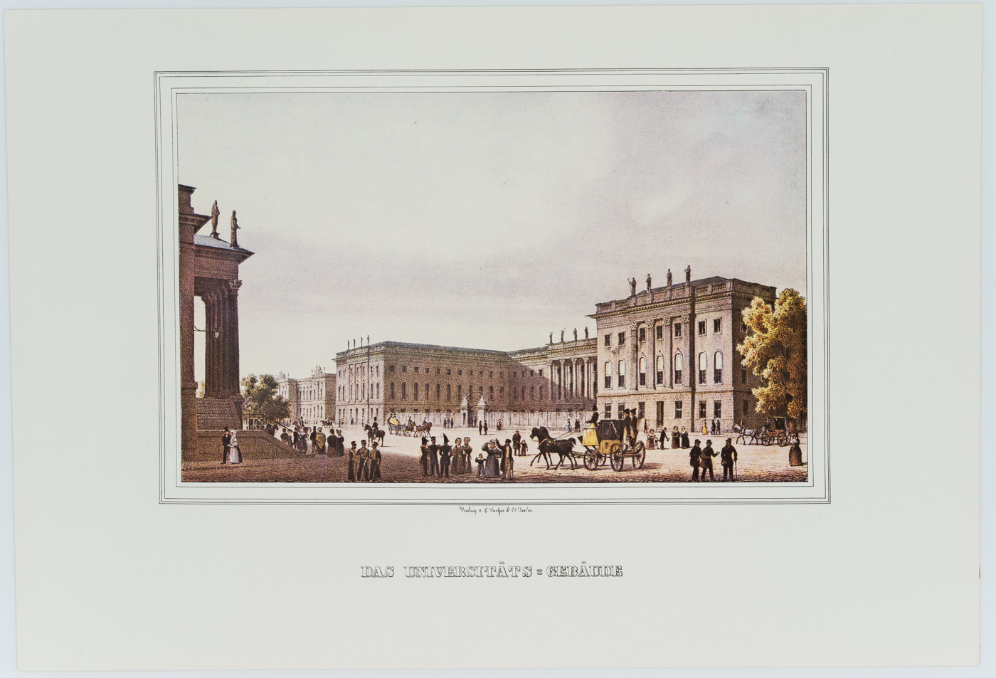 - Description: Portfolio combining 12 reproductions of Berlin city views from the Märkisches Museum Berlin. Among them a representation of the university building after a colour lithograph by Loeillot DE MARS (mentioned 1832-1871), the National Gallery, or the Gendarmenmarkt, after a brush drawing. Published by Druckhaus Karl-Marx-Stadt.
