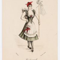 Unknown (20th century), Fashion sketch, Laundry maid, lady in full dress in a traditional costume, c. 1900, Etching