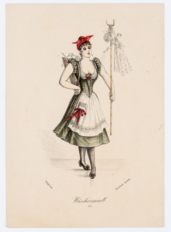 - Inscription: Inscribed on the left below the image with “Deposé and on the right with “Gustav Lyon”. Titled and numbered “Wäschemadl. 11.” below.