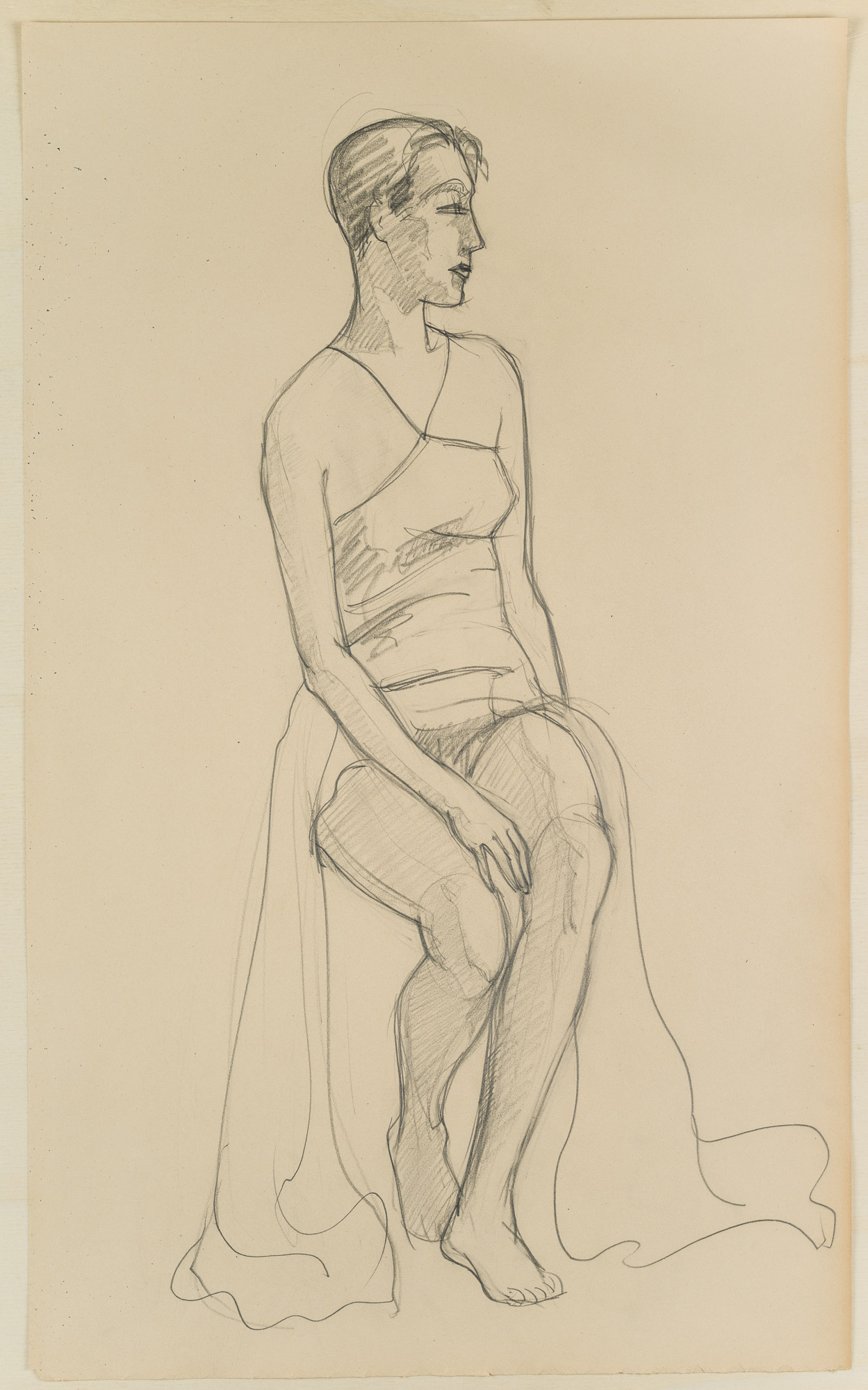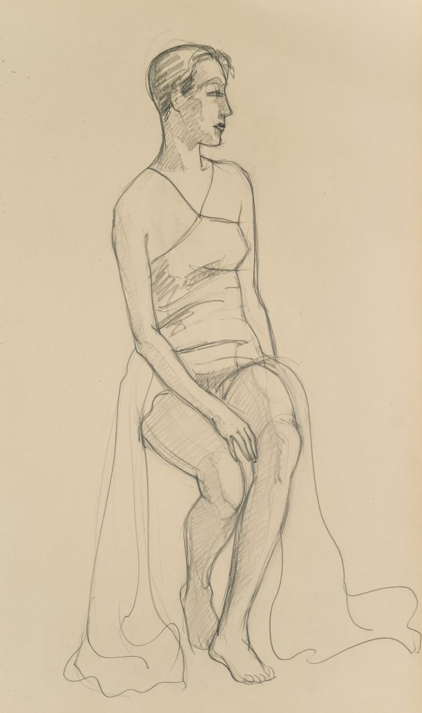 Unknown (20th century), Fashion Study, Portrait of a Modern Lady in a Triangle Strap Dress, , Pencil