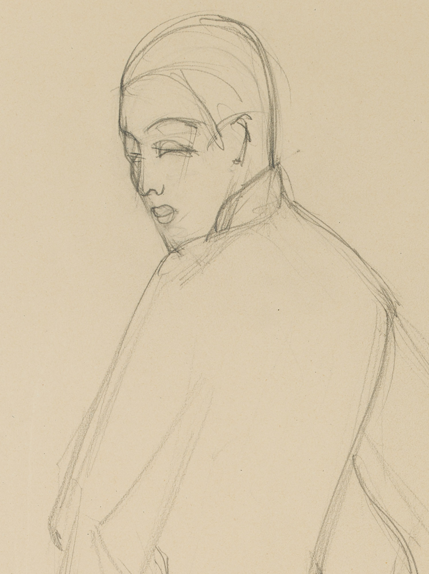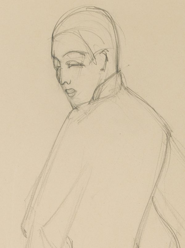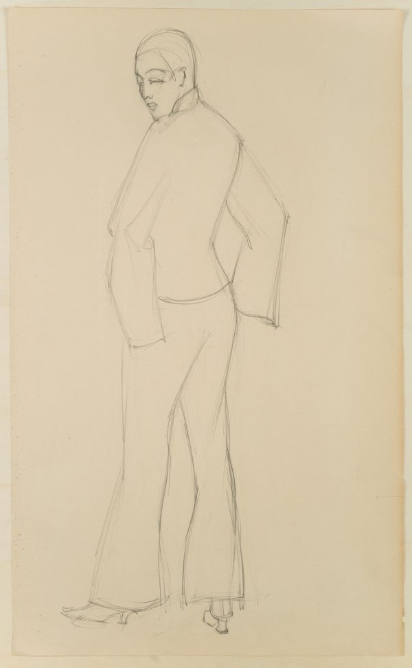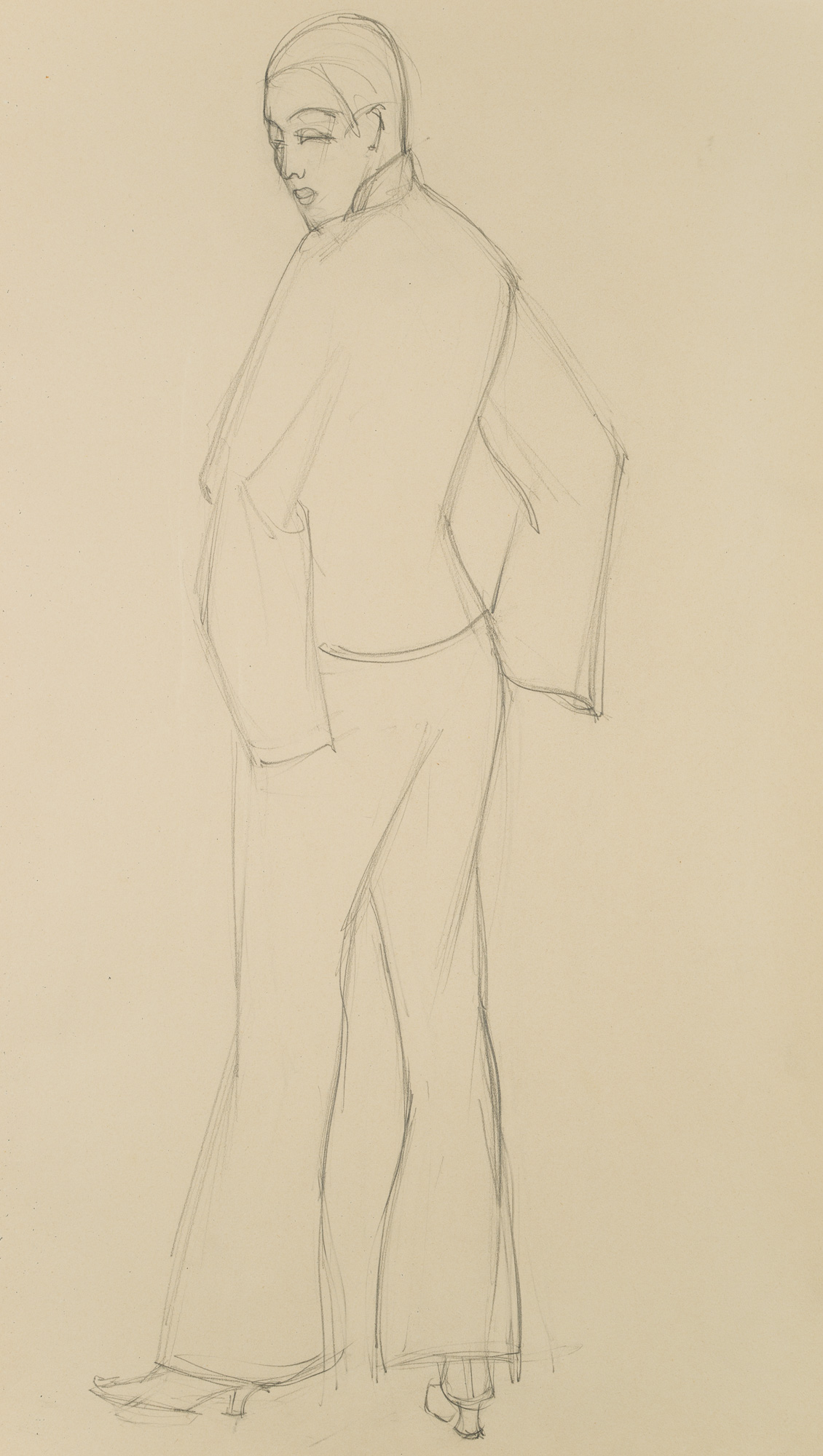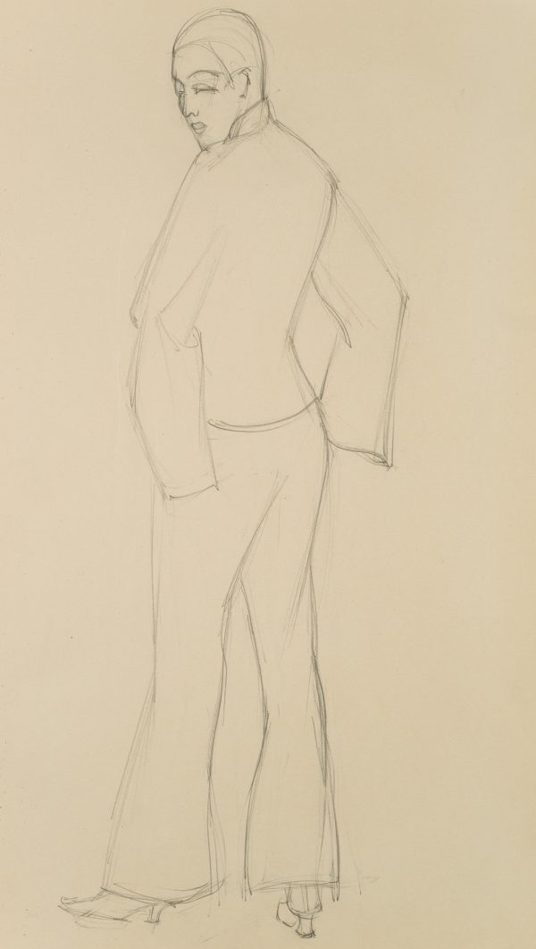 Unknown (20th century), Fashion study, trouser suit in back view, 1920, Pencil