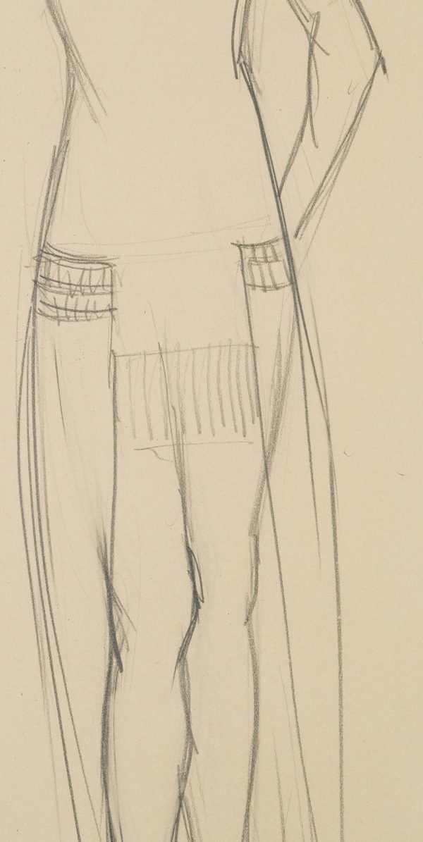Unbekannt (20. Jahrhundert), Modestudie, Kleid für eine Dame mit schlanker Silhouette, 1920, Bleistift
