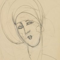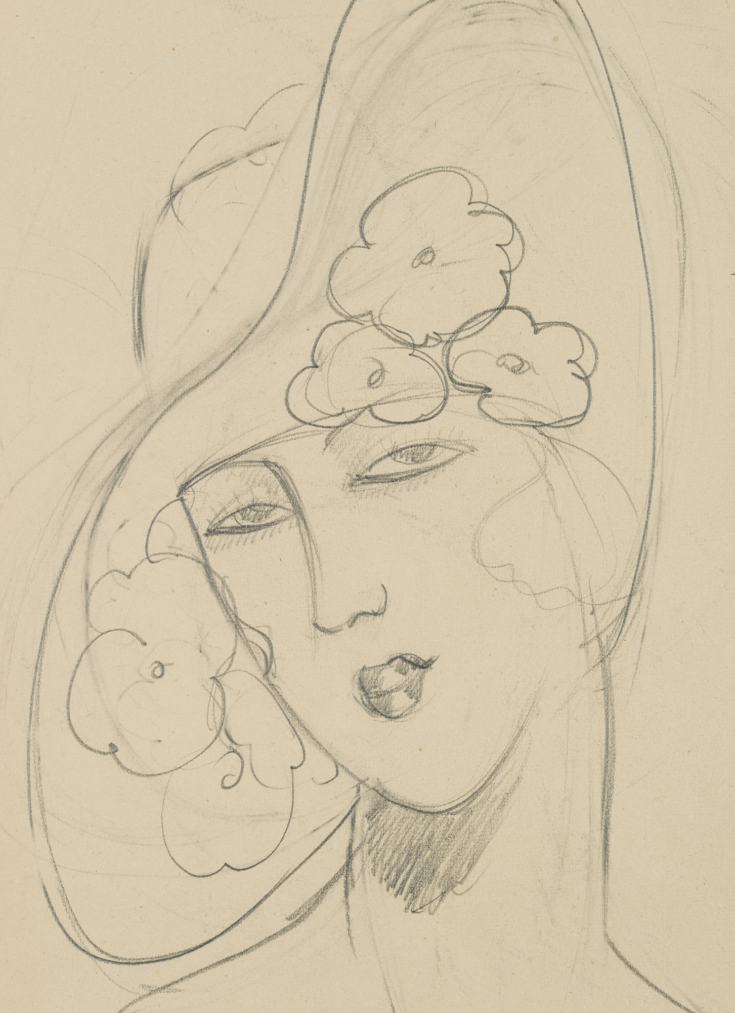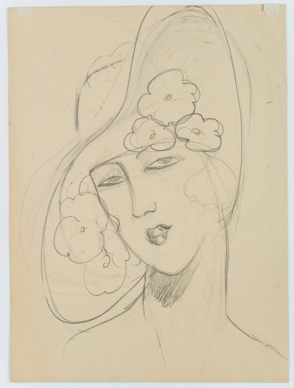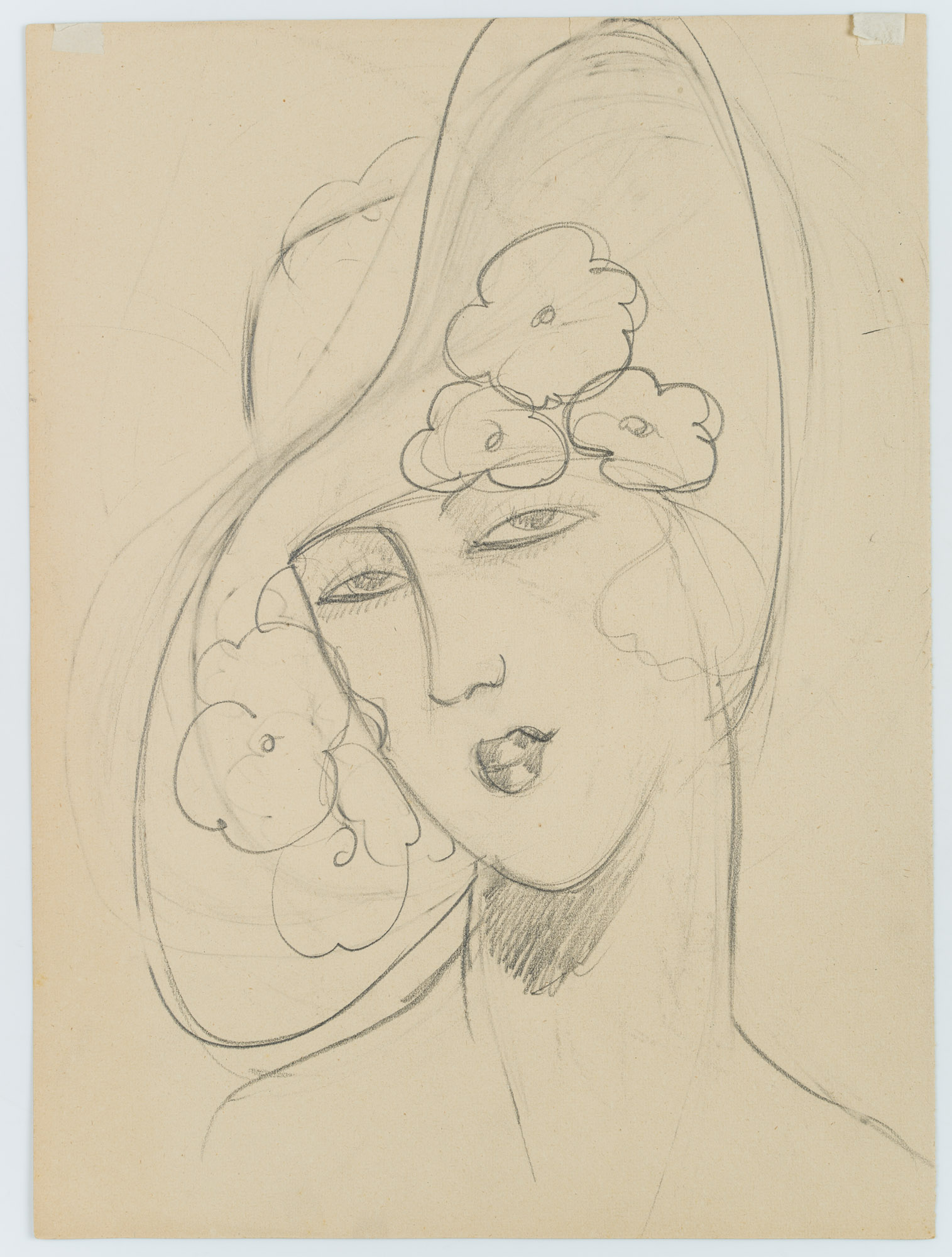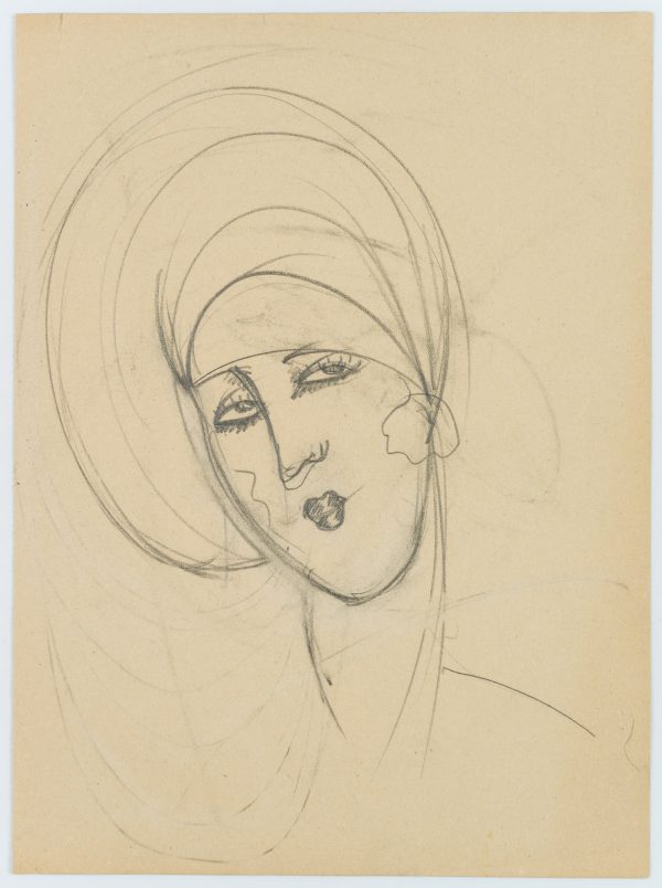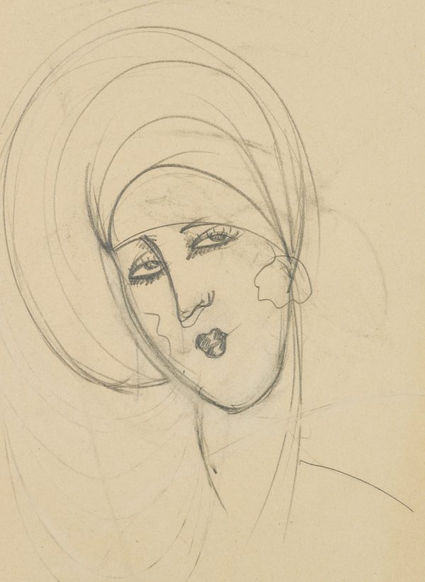 Unknown (20th century), Fashion study Head of a lady with hat Art Deco, Golden Twenties, 1920, Pencil
