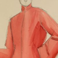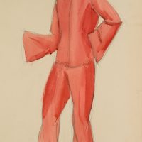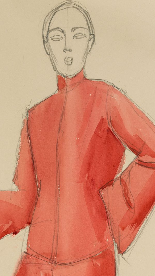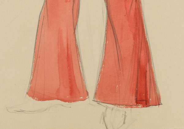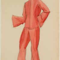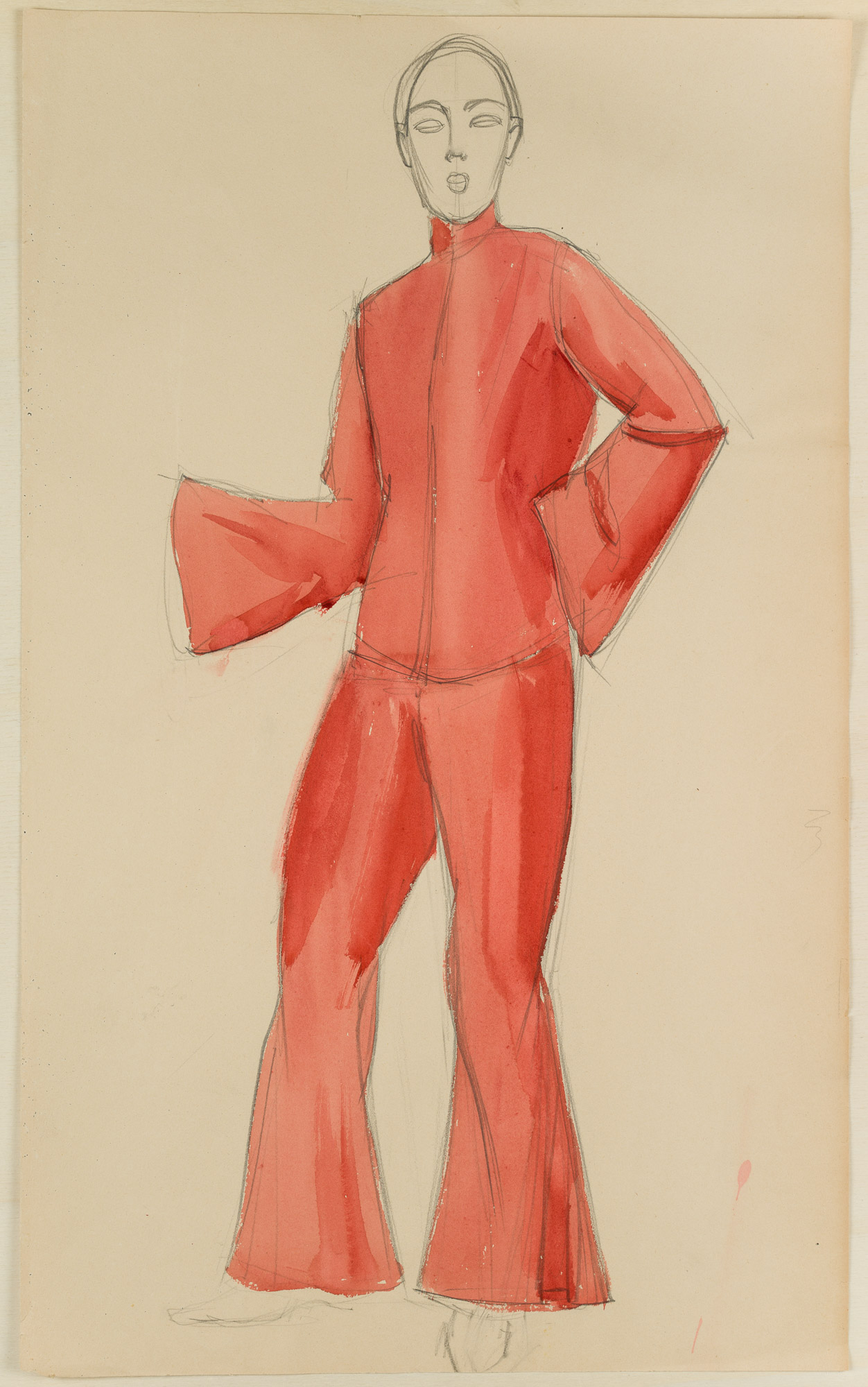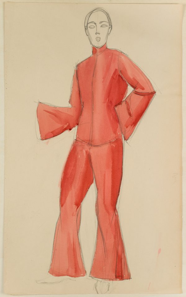 Unknown (20th century), Fashion Study, Red jumpsuit with flare, , Pencil