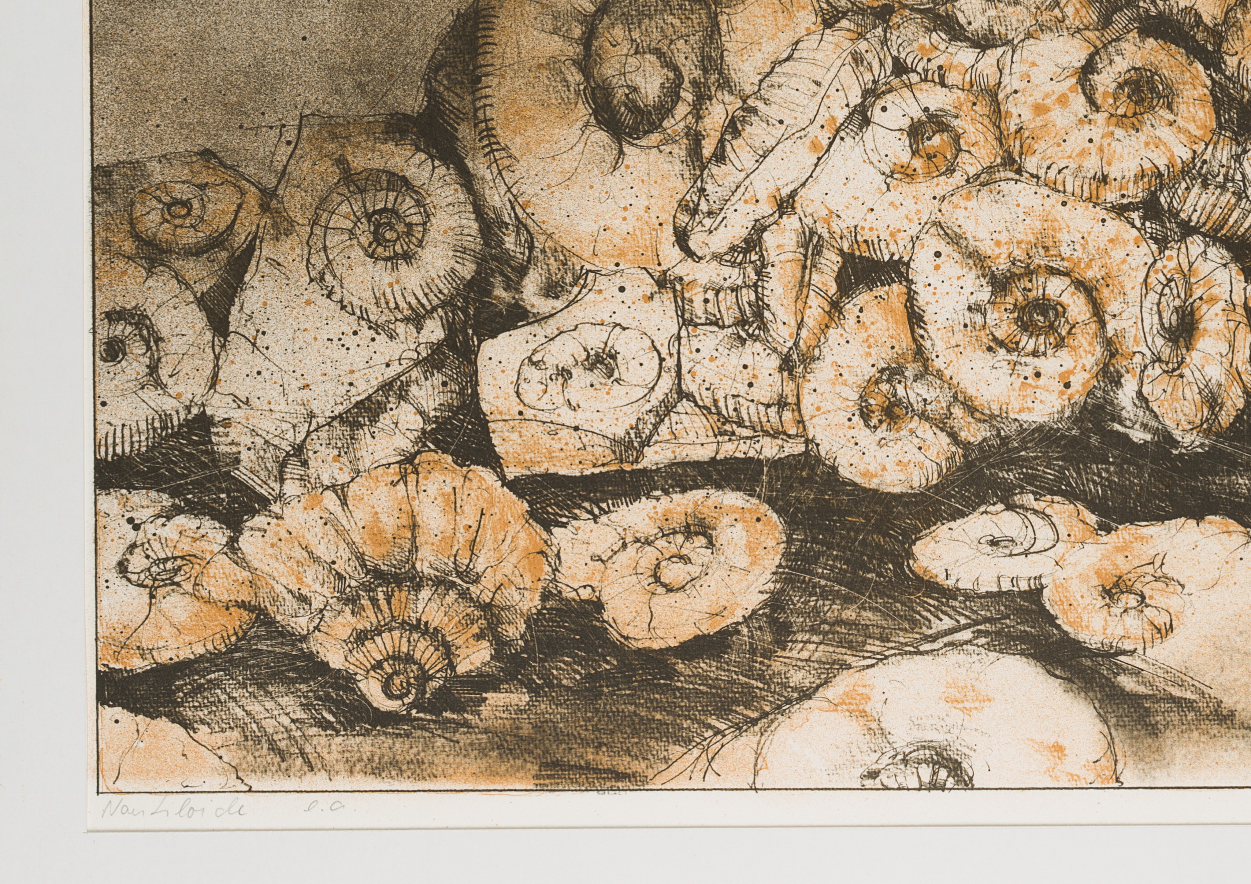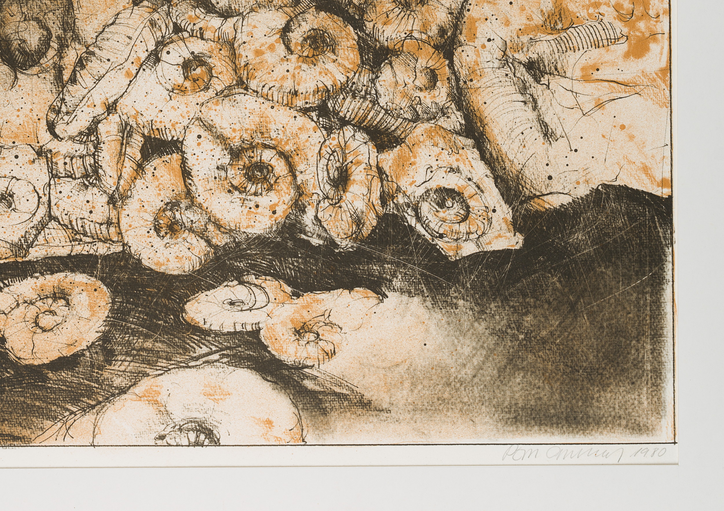 - Inscription: Lower right signed: “[unkenntlich]”. lower left inscribed by the artist’s hand: “Nautiloide e.a.”. Lower right dated: “1980”.