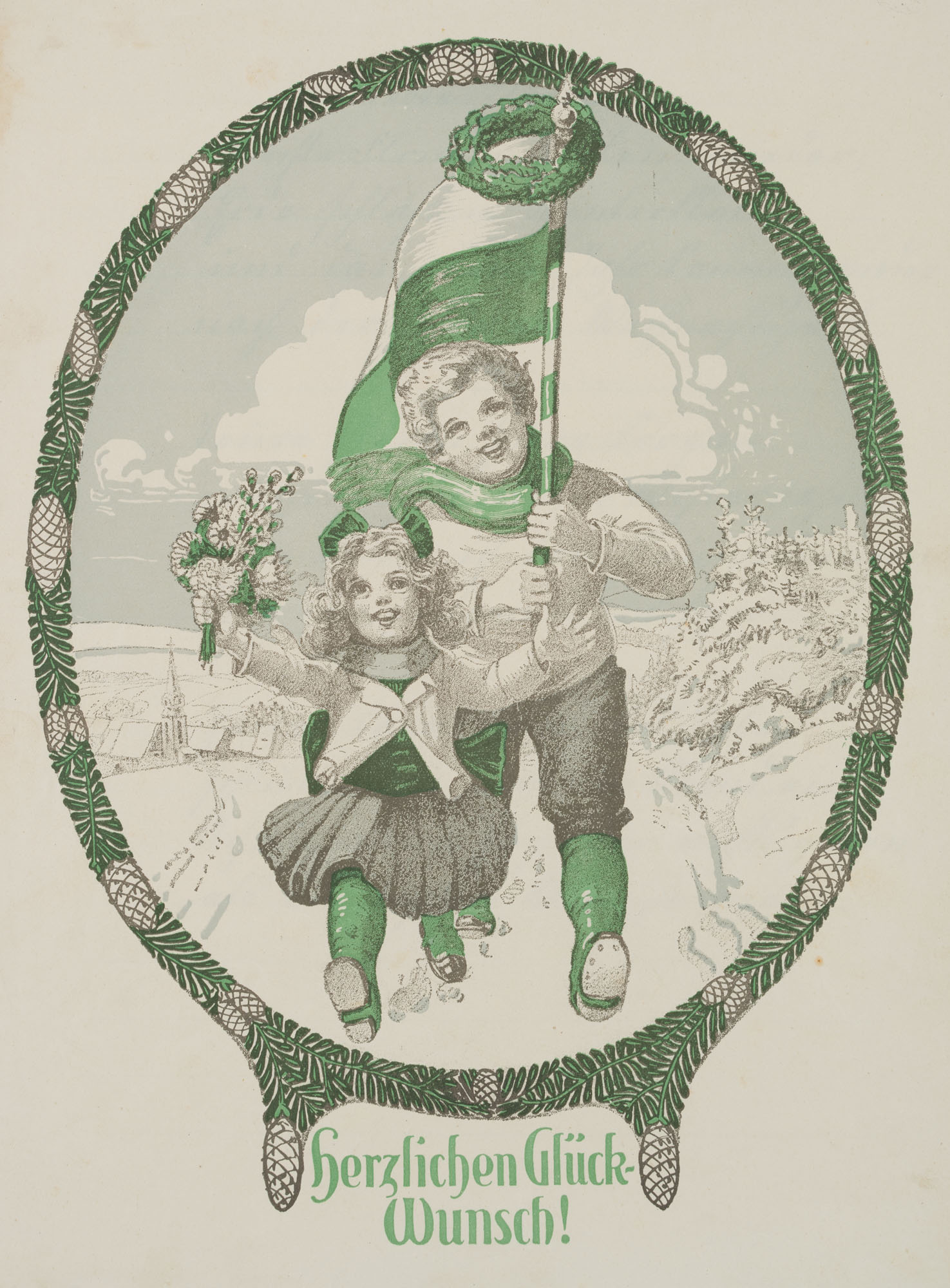 Unknown (20th century), New Year’s letter “Congratulations!”, paper antique, c. 1930, Chromolithograph