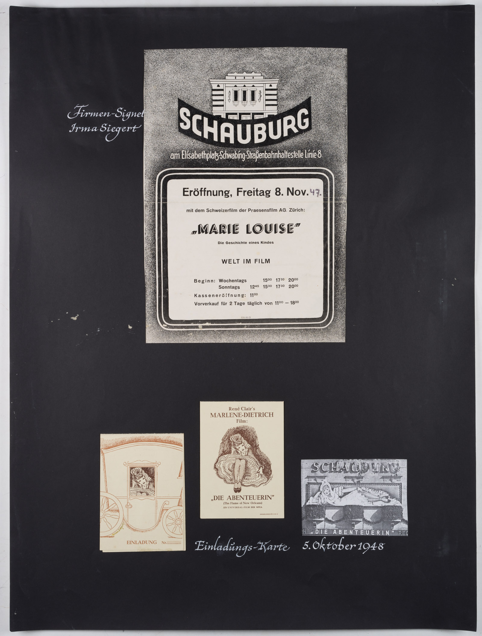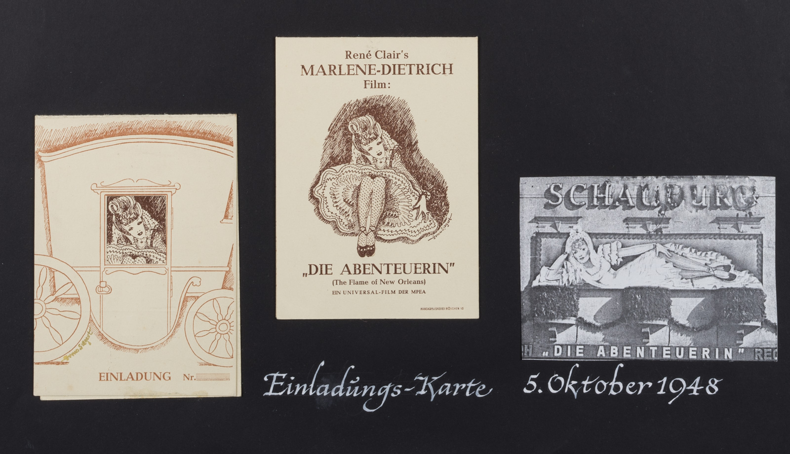 Unbekannt (20. Jahrhundert), Nostalgische Collage zum Kino der 1940er Jahre, Marlene Dietrich, Abenteuerin, um 1945, Offsetdruck