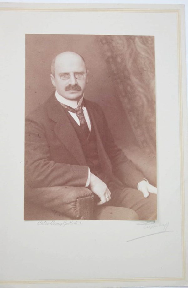 - Description: A very nice portrait of a gentleman. A gentleman in a suit with a stand-up collar and a binocle sits in a leather chair and looks at the viewer. This is a typical gentleman portrait of its time and yet Pieperhoff knew how to fill the photo with life. The photo is mounted on a signed cardboard. Based on a dated photo from the same photo series, this photo can most likely be dated to 1921.