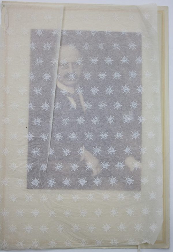 - Condition: Good condition, only age-related yellowing of the paper. The protective paper over the photo has creases and scattered small tears.