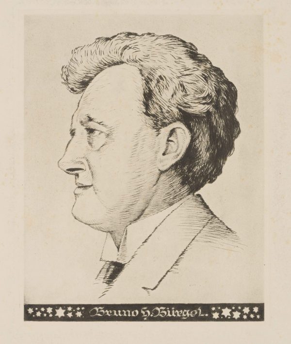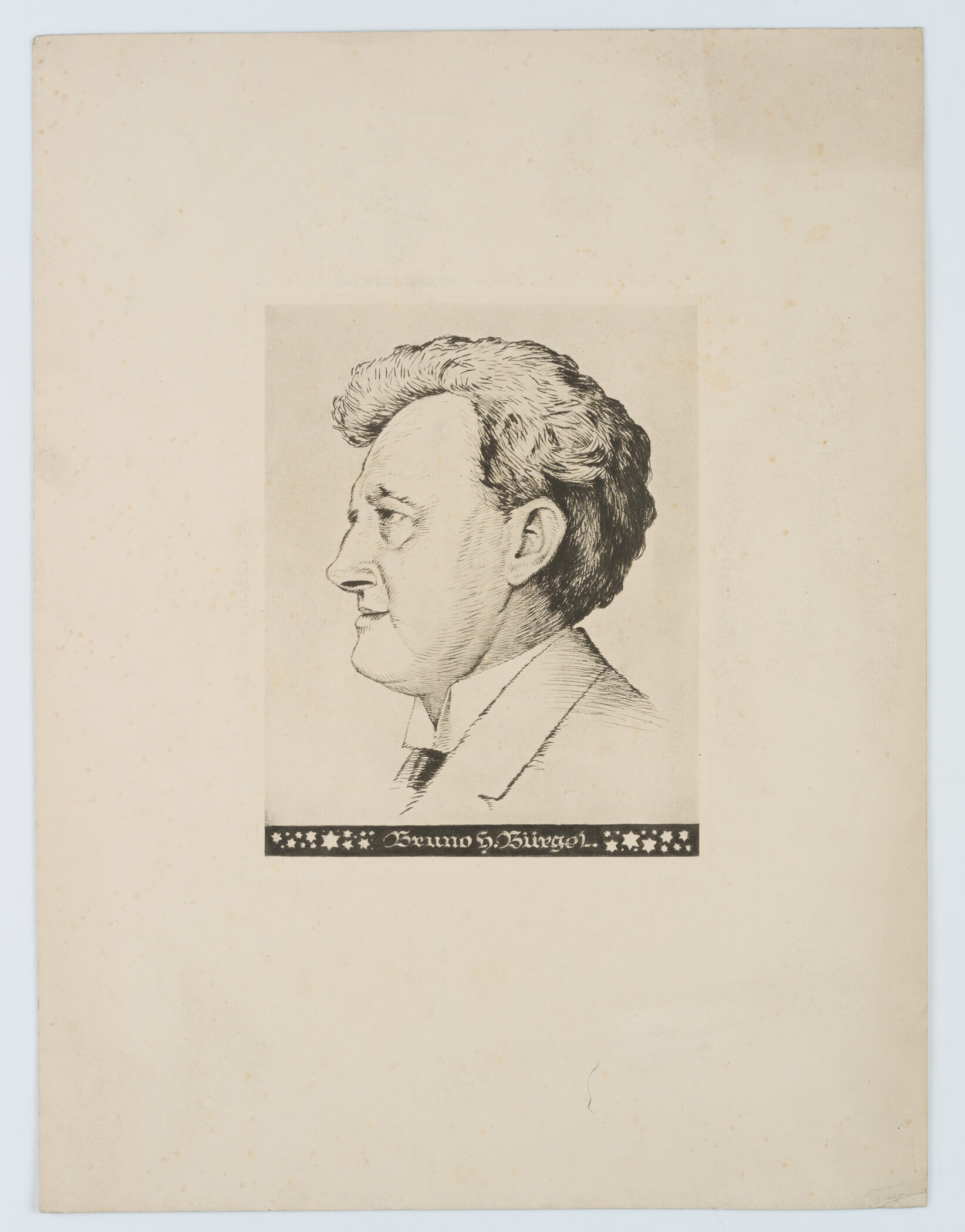 - Inscription: Lower middle inscribed in the printing plate: “Bruno H Bürgel”.