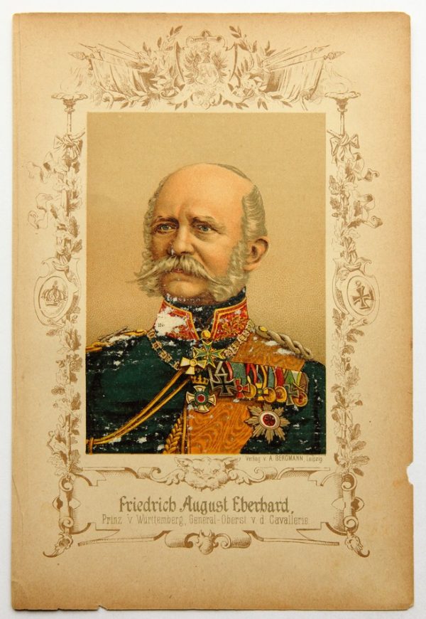 - Inscription: Below in the printing plate inscribed “Verlag v. A. Bergmann, Leipzig”. Inscribed below with the sitter’s name and ranks.