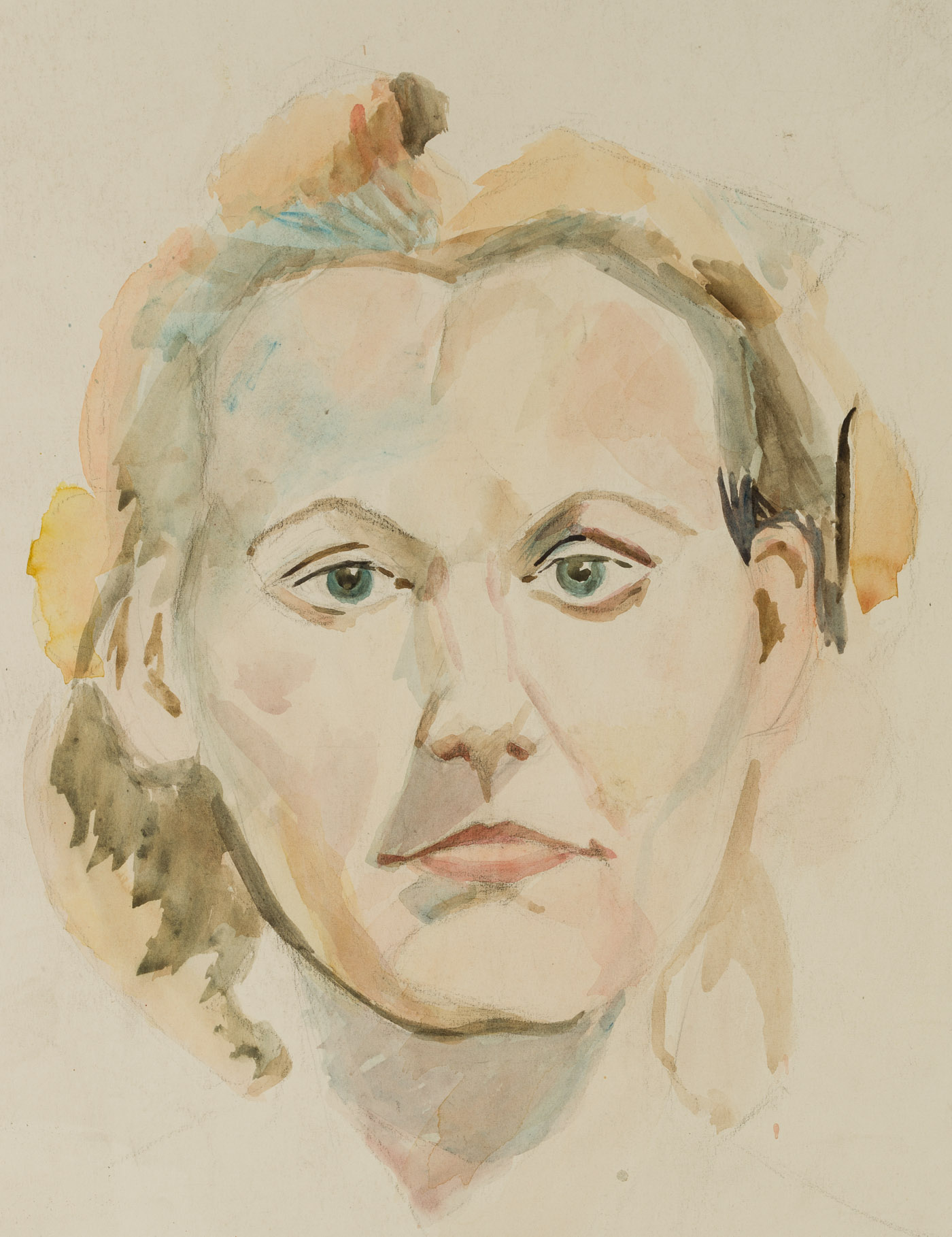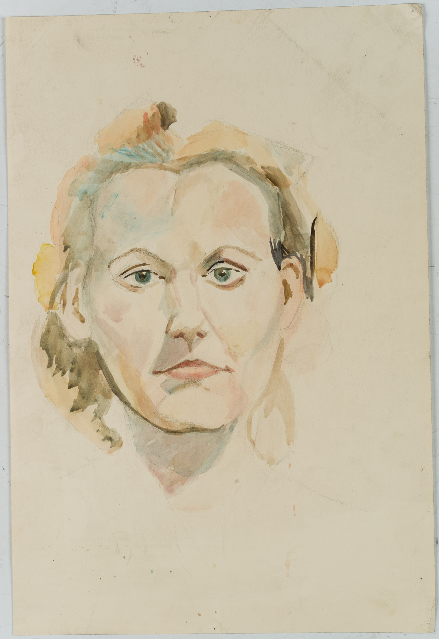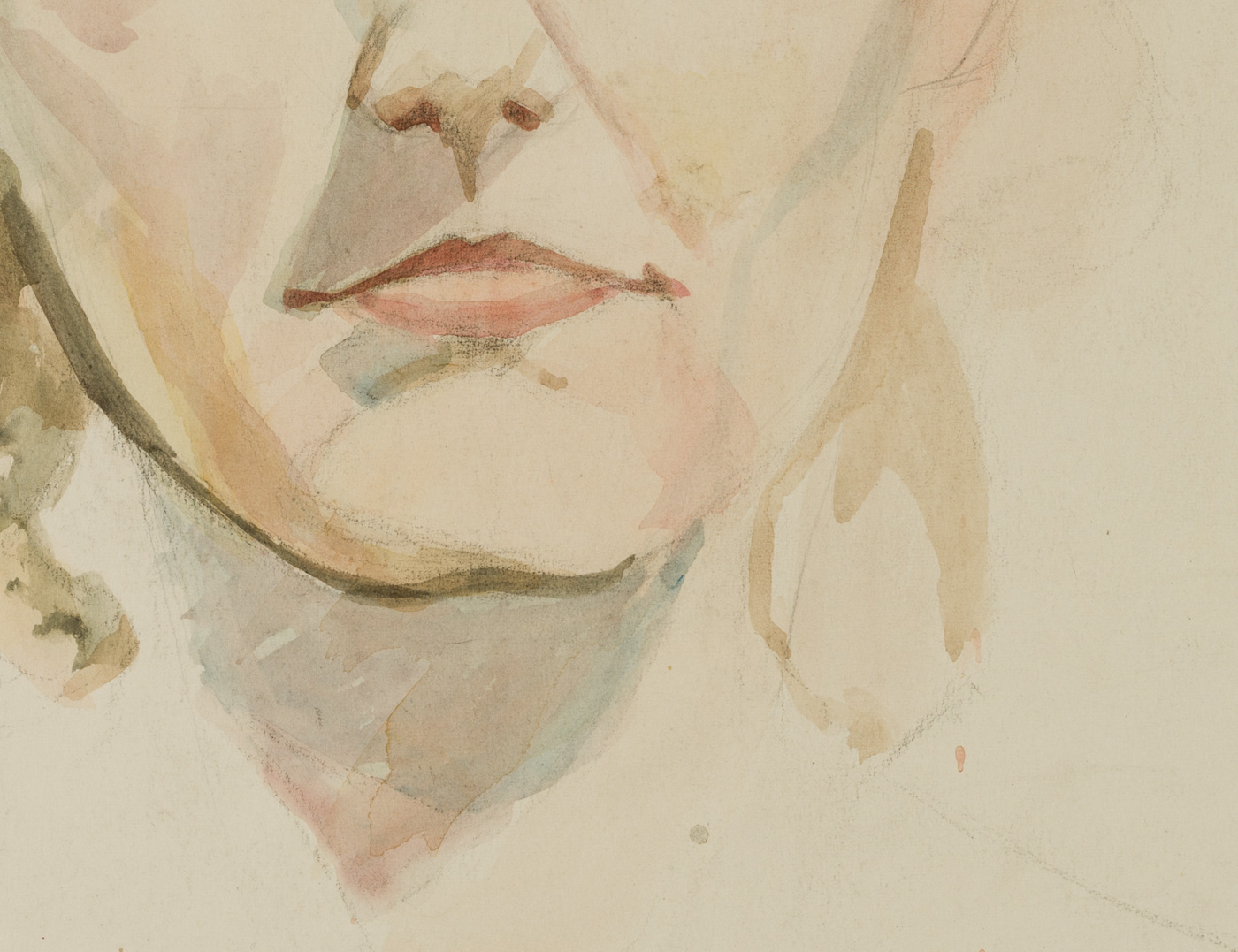 Unknown (20th century), Portrait of a woman with short hair, , Watercolor