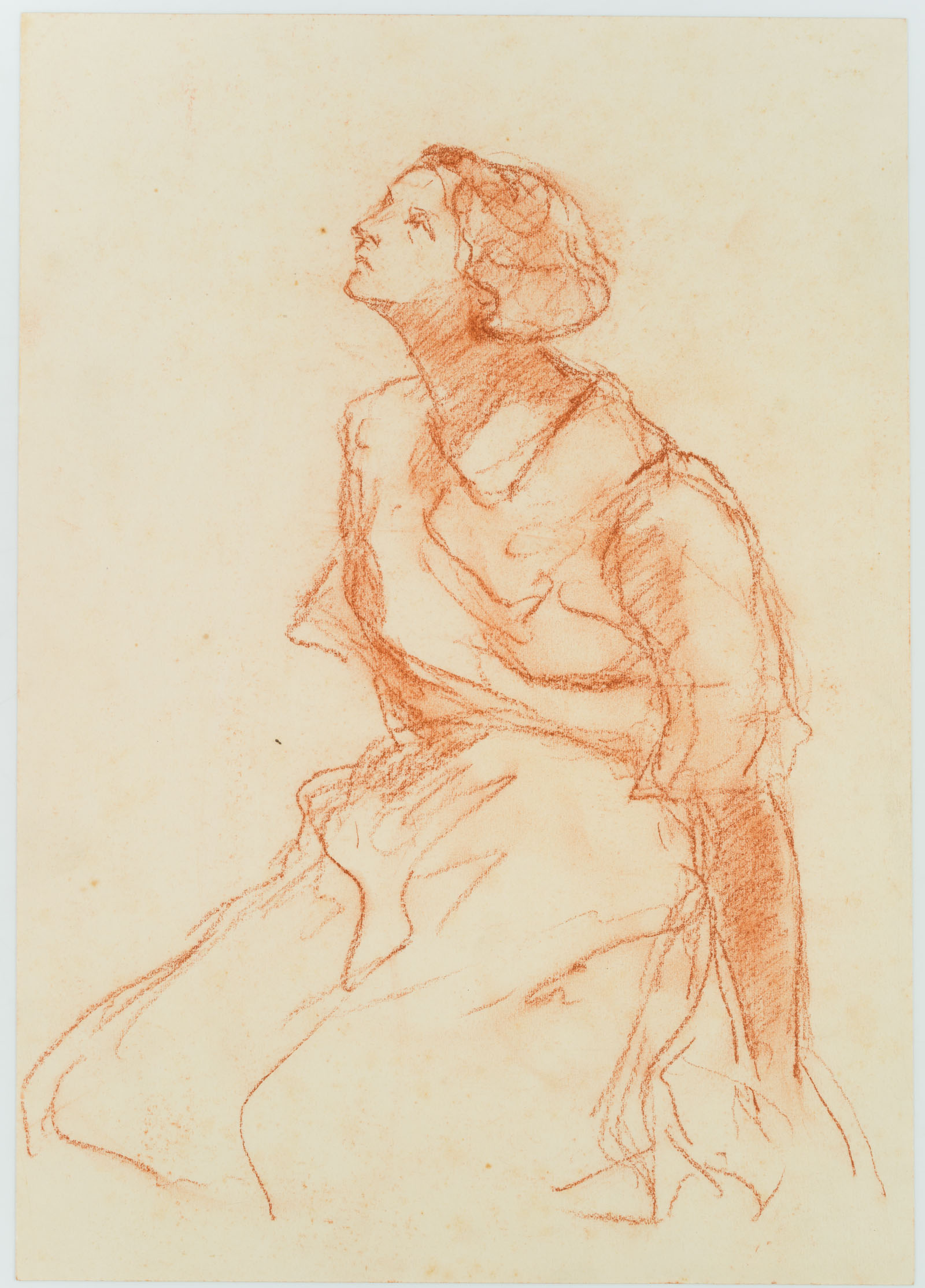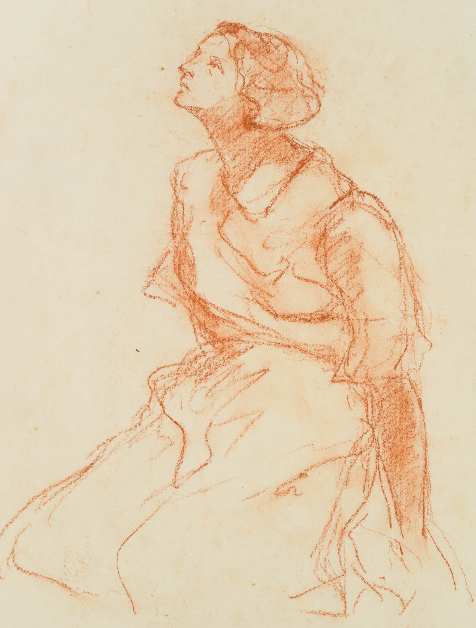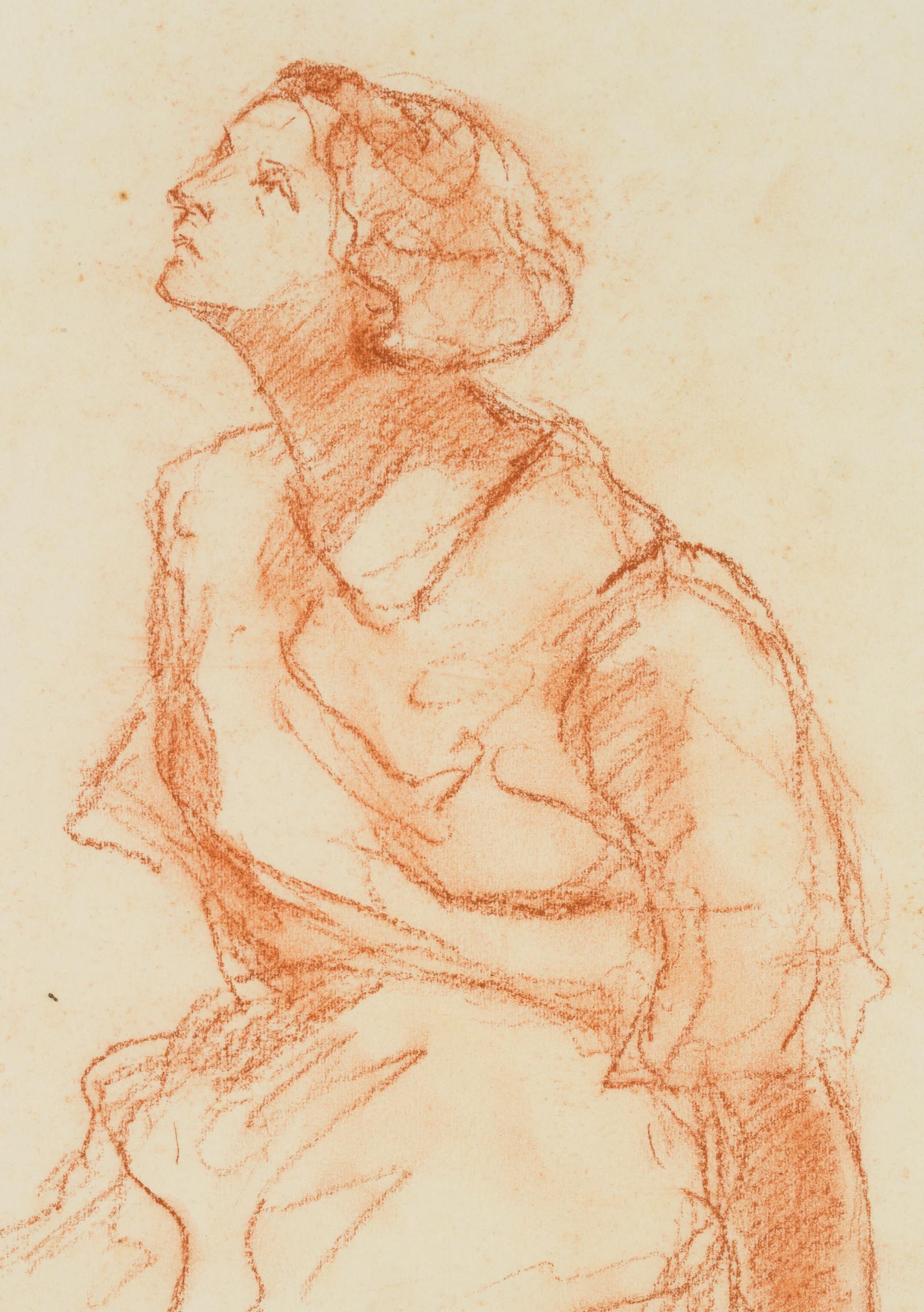 Unknown (20th century), Portrait of a Sitting Woman, c. 1920, Red chalk drawing
