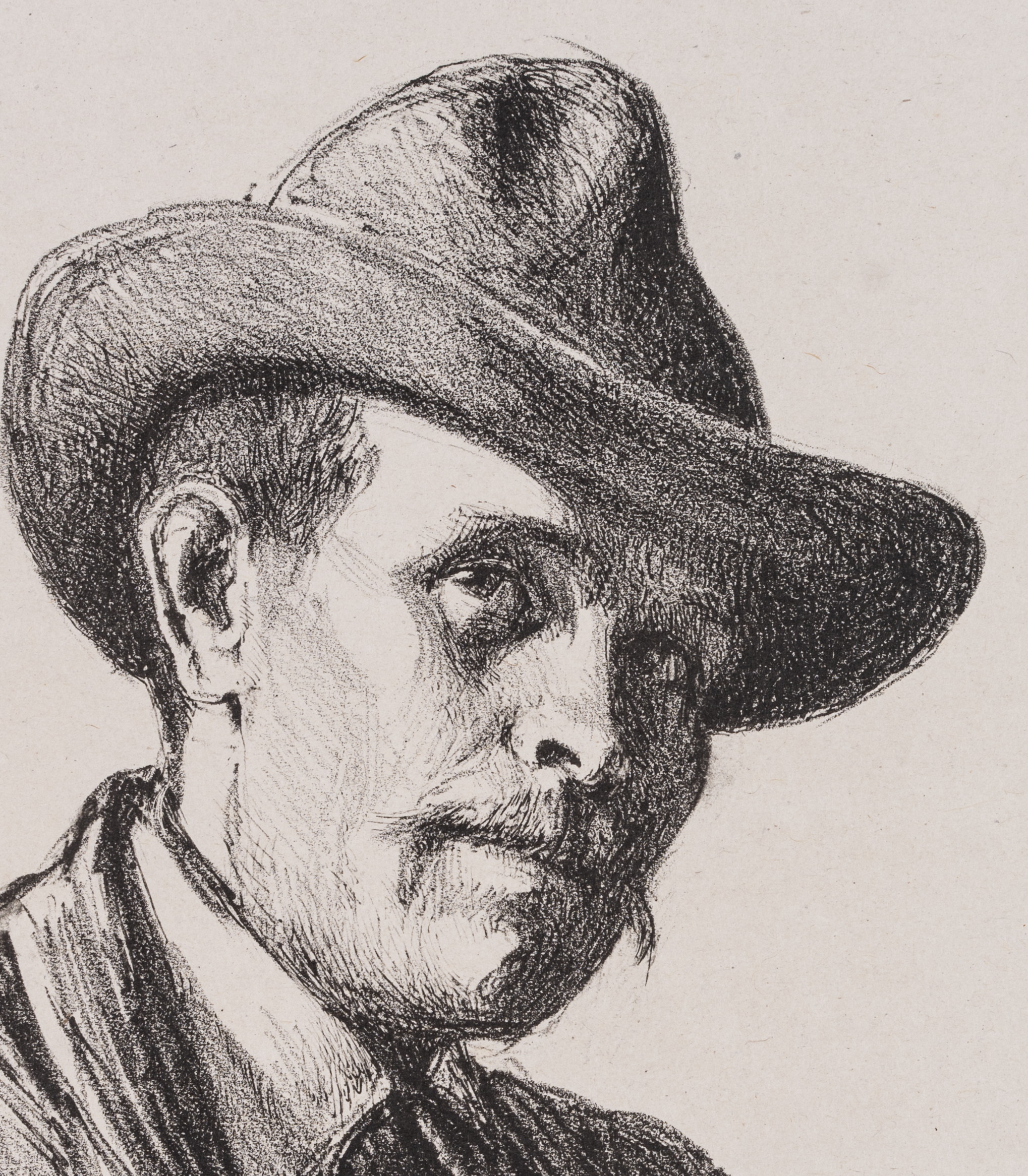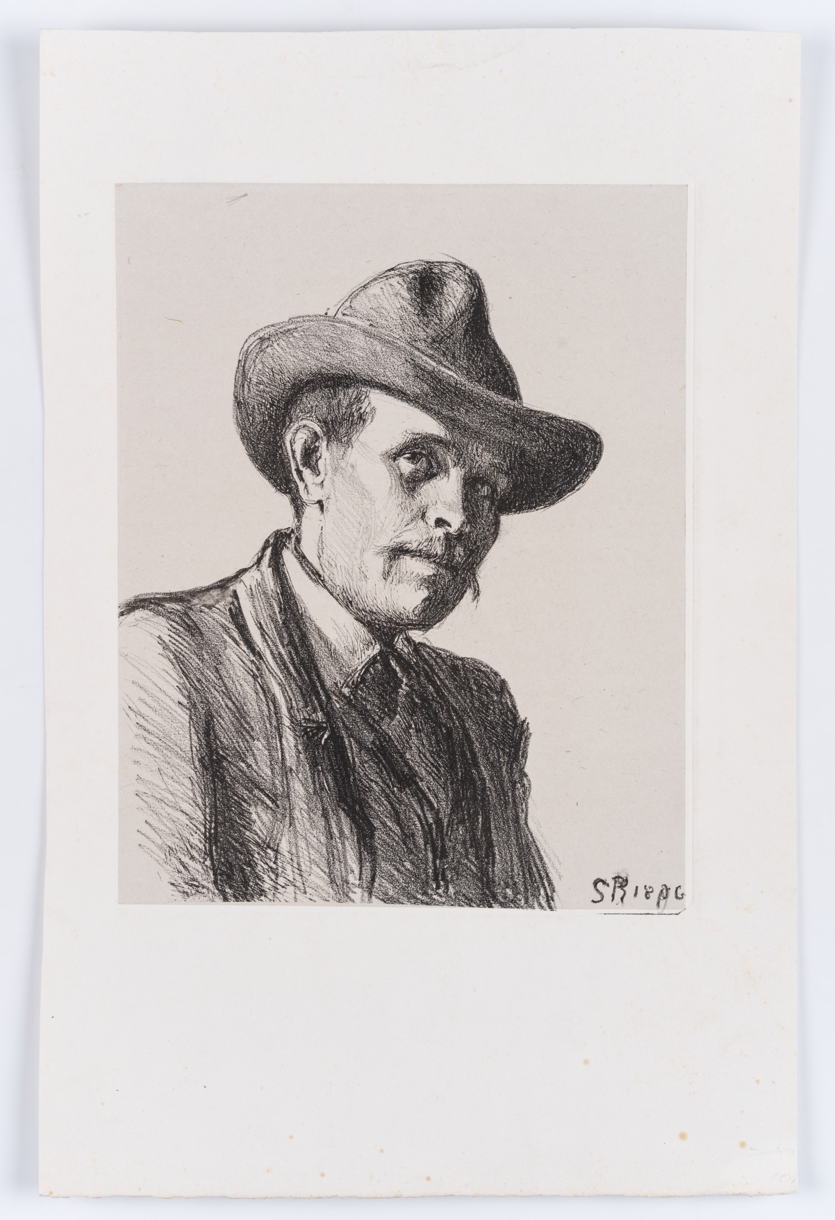 Unbekannt (20. Jahrhundert), Porträt eines Mannes mit Hut, 1918, Reproduktion