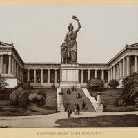 Unbekannt (20. Jahrhundert), Ruhmeshalle und Bavaria in München, um 1900, Lithographie