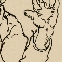 - Zustand: Sehr guter Zustand. Auf der Vorderseite leichte Verfärbungen am Fuß des Dargestellten. Mittig leichter Knick, vertikal verlaufen. Am oberen Rand leicht eingerissen, vermutlich durch Heraustrennen aus einer Publikation. Das Blatt ist in ein Passepartout aus Papier montiert.