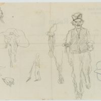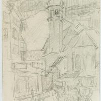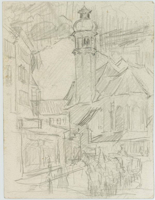 - Description: Pencil drawings by an anonymous draughtsman with rural town views and a depiction of field workers. From an elevated vantage point or in the middle of village streets, the artist draws a vivid picture of village life. Likewise, he shows workers in the fields at their arduous work.