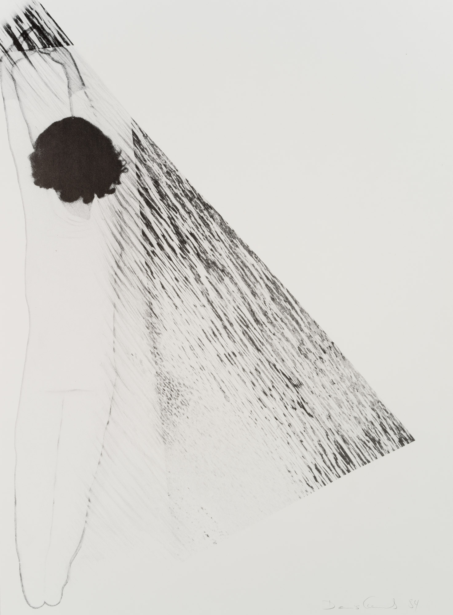 Unbekannt (20. Jahrhundert), Rätselhafte Darstellung. Sich erhebende Rückenfigur mit angedeuteten abstrakten Flügeln, 1984, Siebdruck