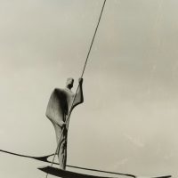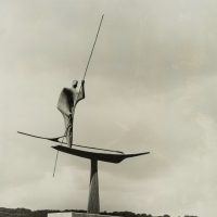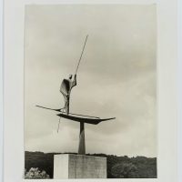 Unknown (20th century), Large Ferryman” sculpture in Esslingen am Neckar, c. 1996, Black and white photograph