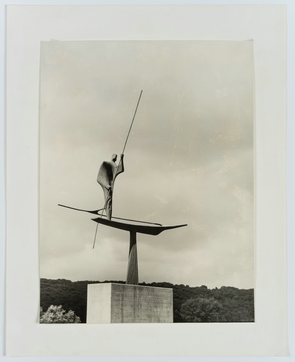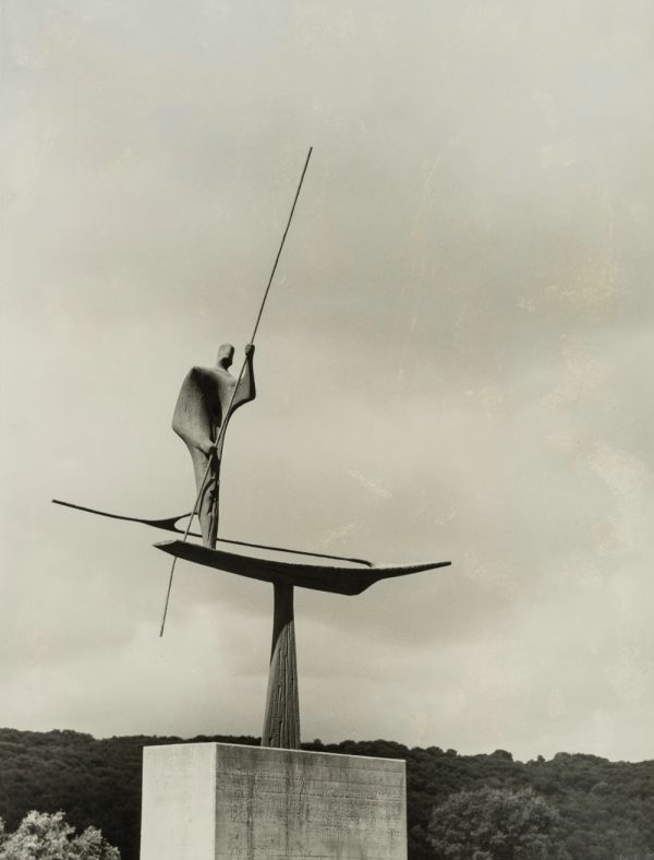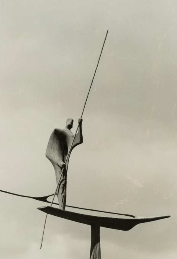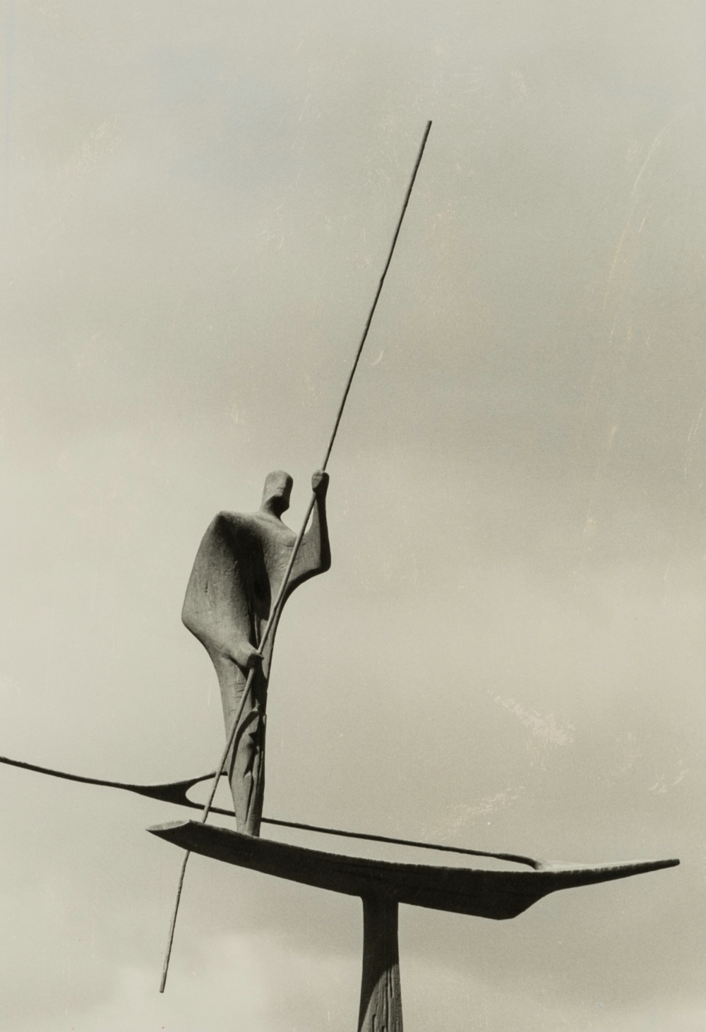 Unbekannt (20. Jahrhundert), Skulptur “Großer Fährmann” in Esslingen am Neckar, um 1996, Schwarzweißfotografie
