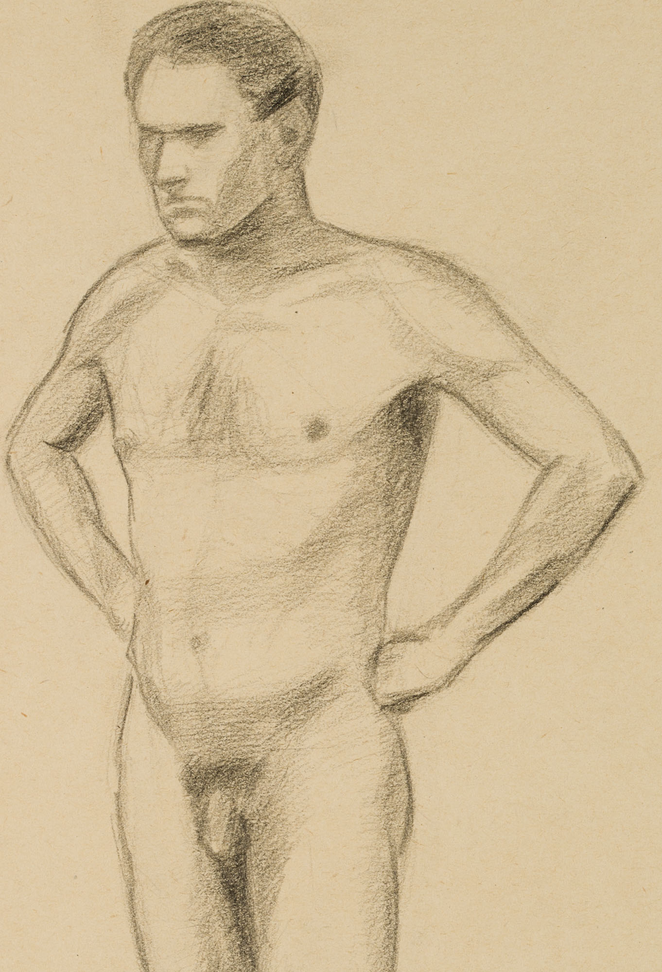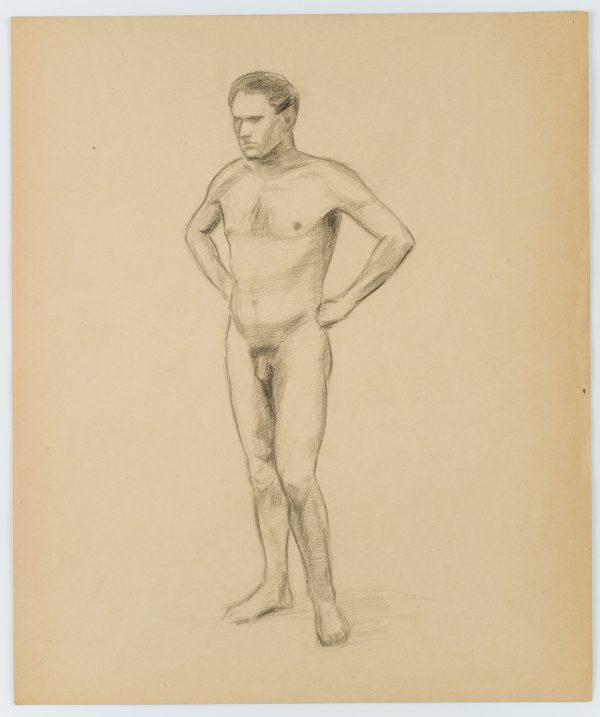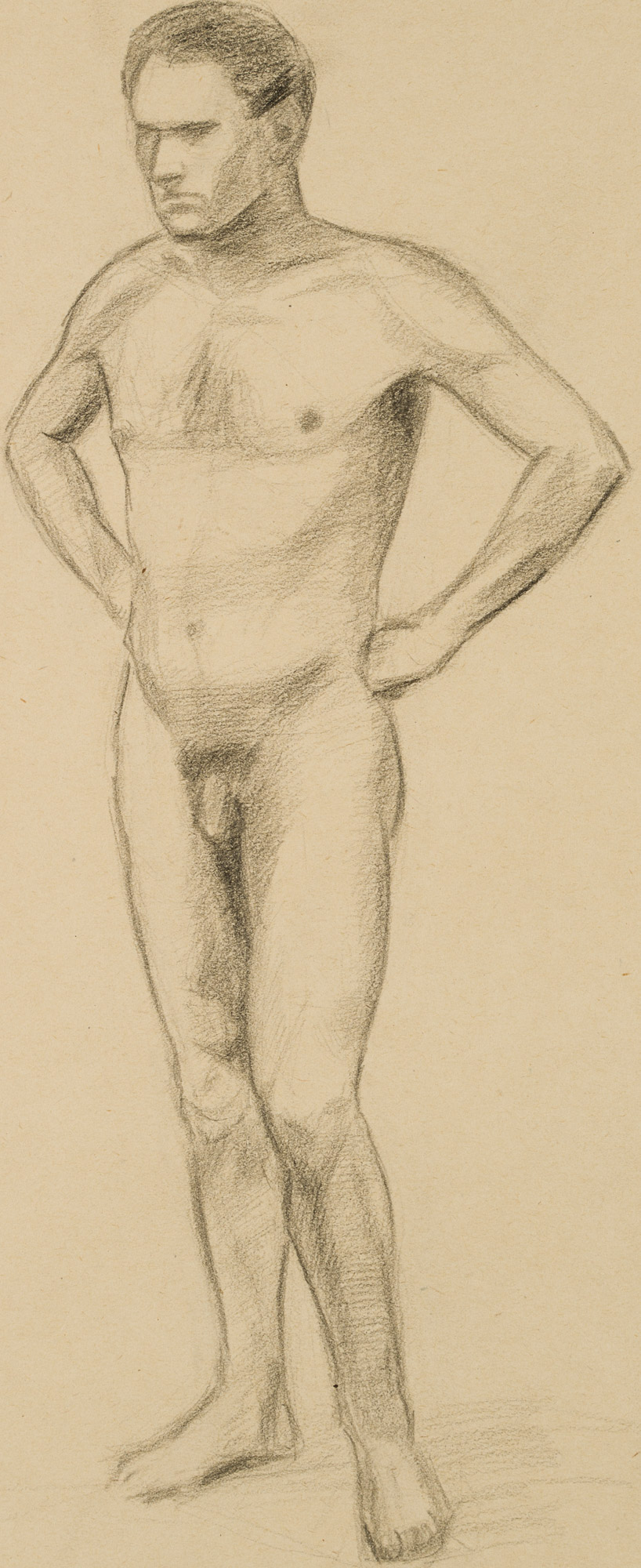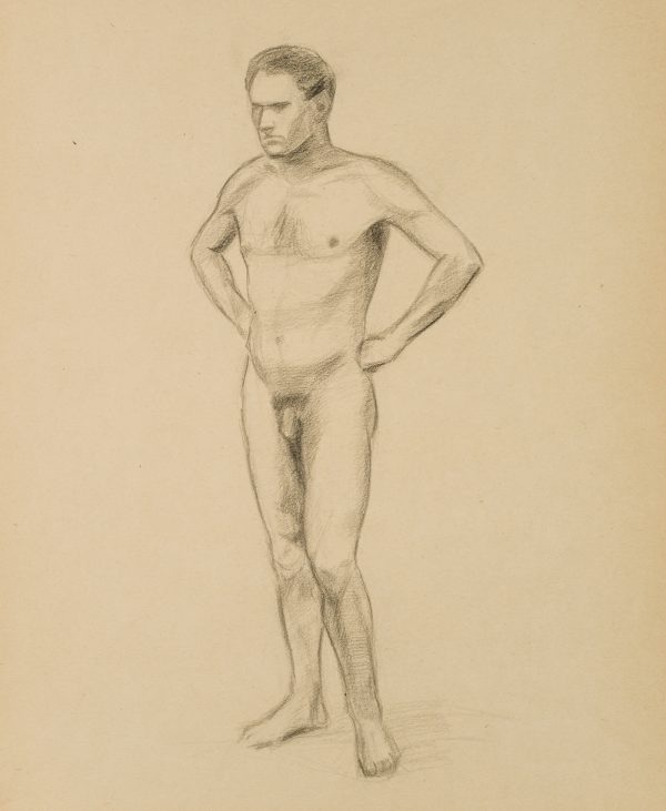 Unknown (20th century), Standing male nude from the front, , Pencil