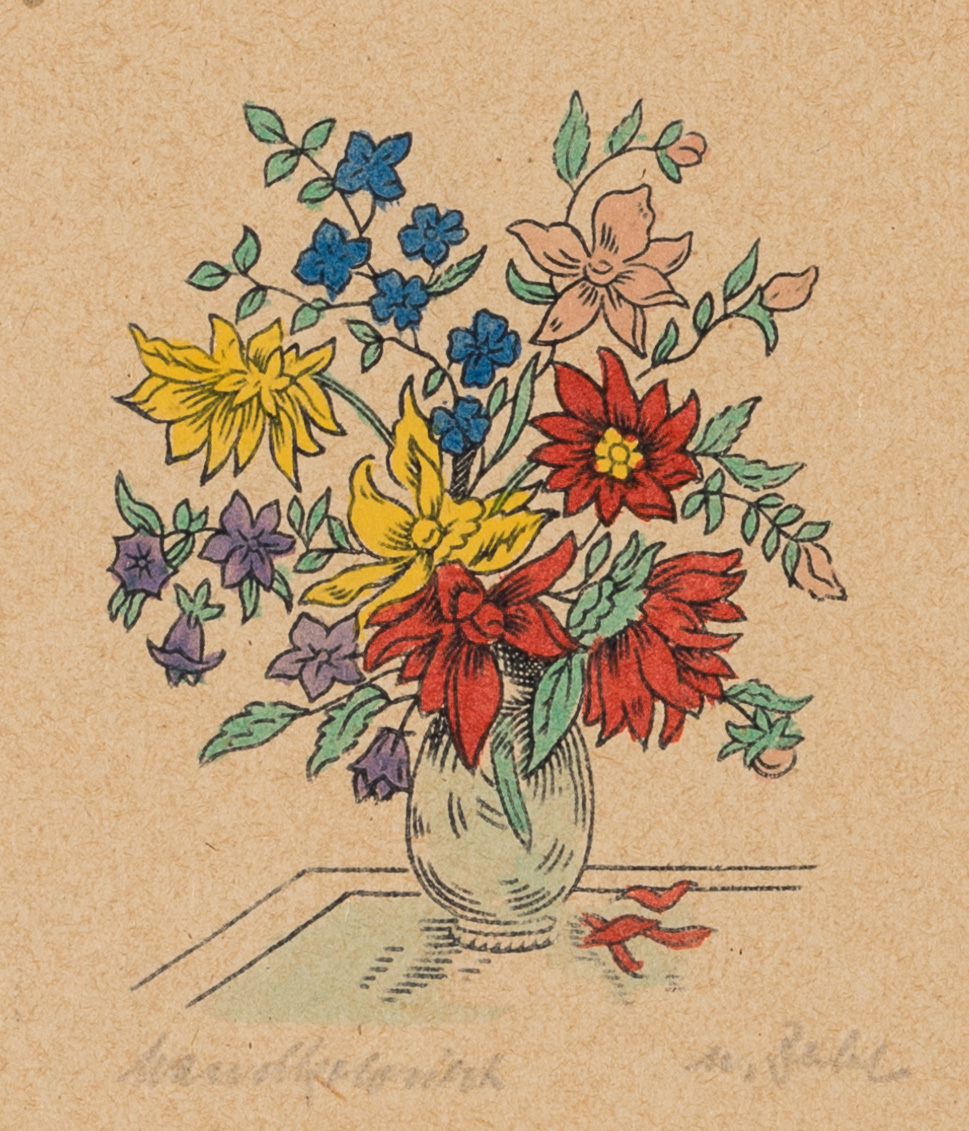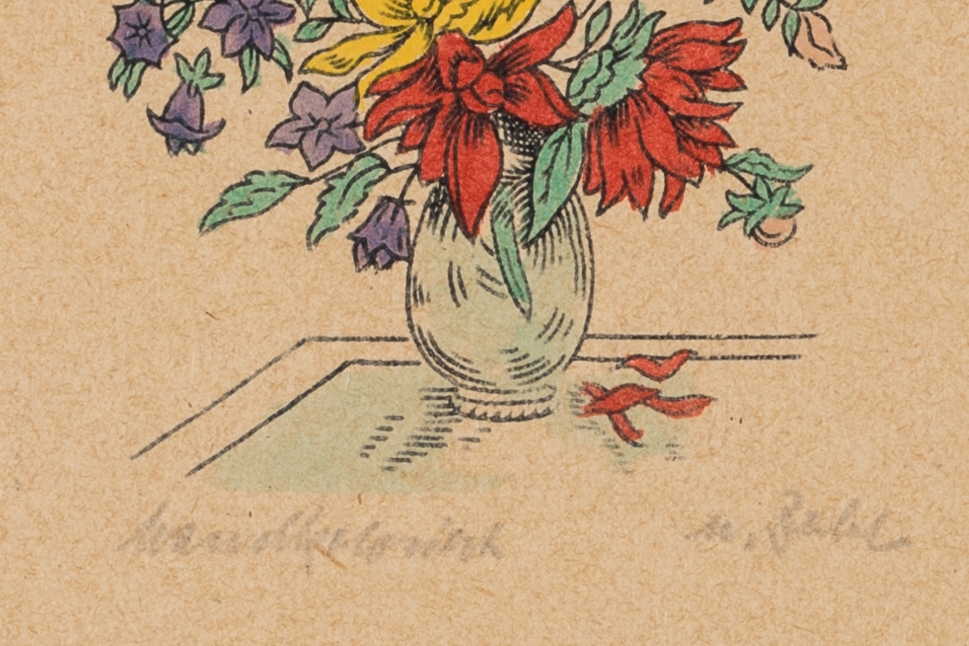Unknown (20th century), Still Life with Colourful Bouquet of Flowers, , Woodcut