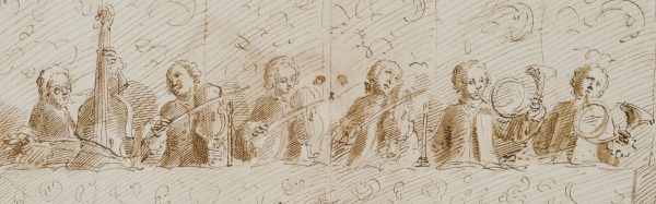 Unbekannt (20. Jahrhundert), Tanzgesellschaft und Kammermusik, Maskenball, Faksimile, um 1920, Reproduktion