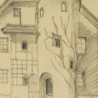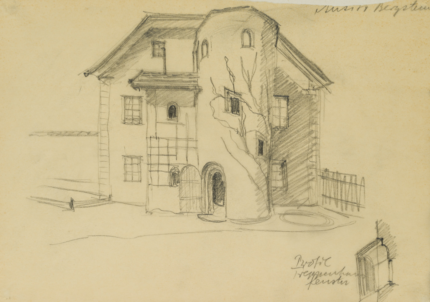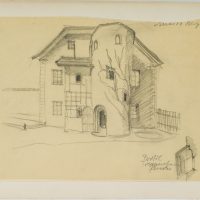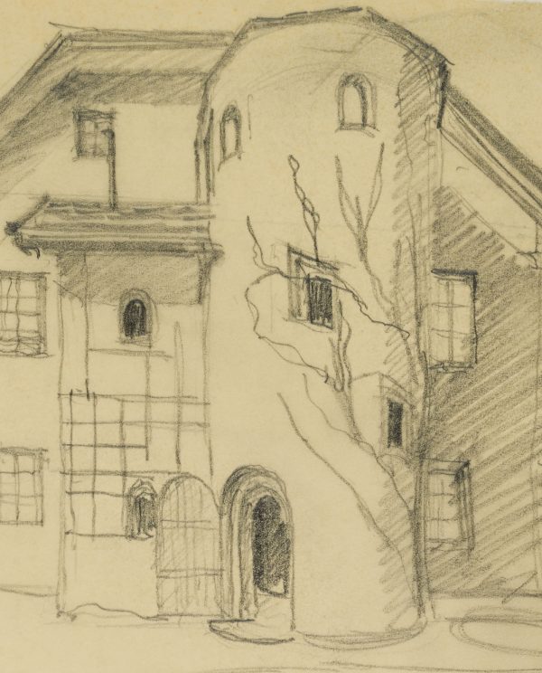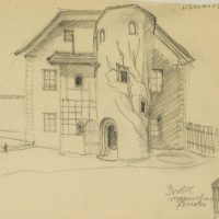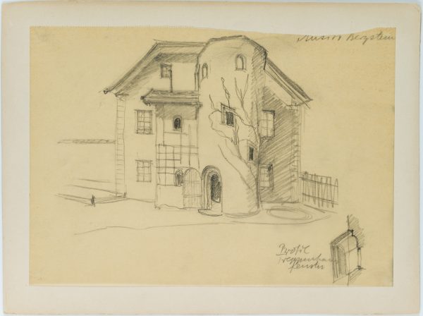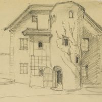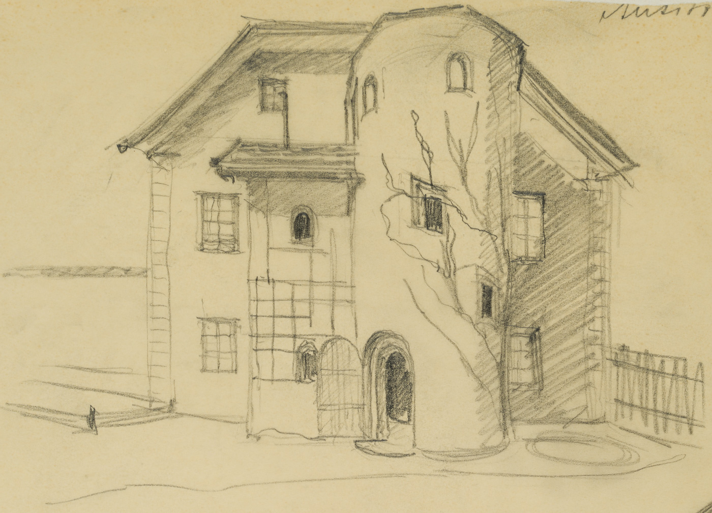 Unknown (20th century), Tyrolean farmhouse with round tower, , Pencil