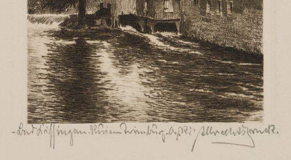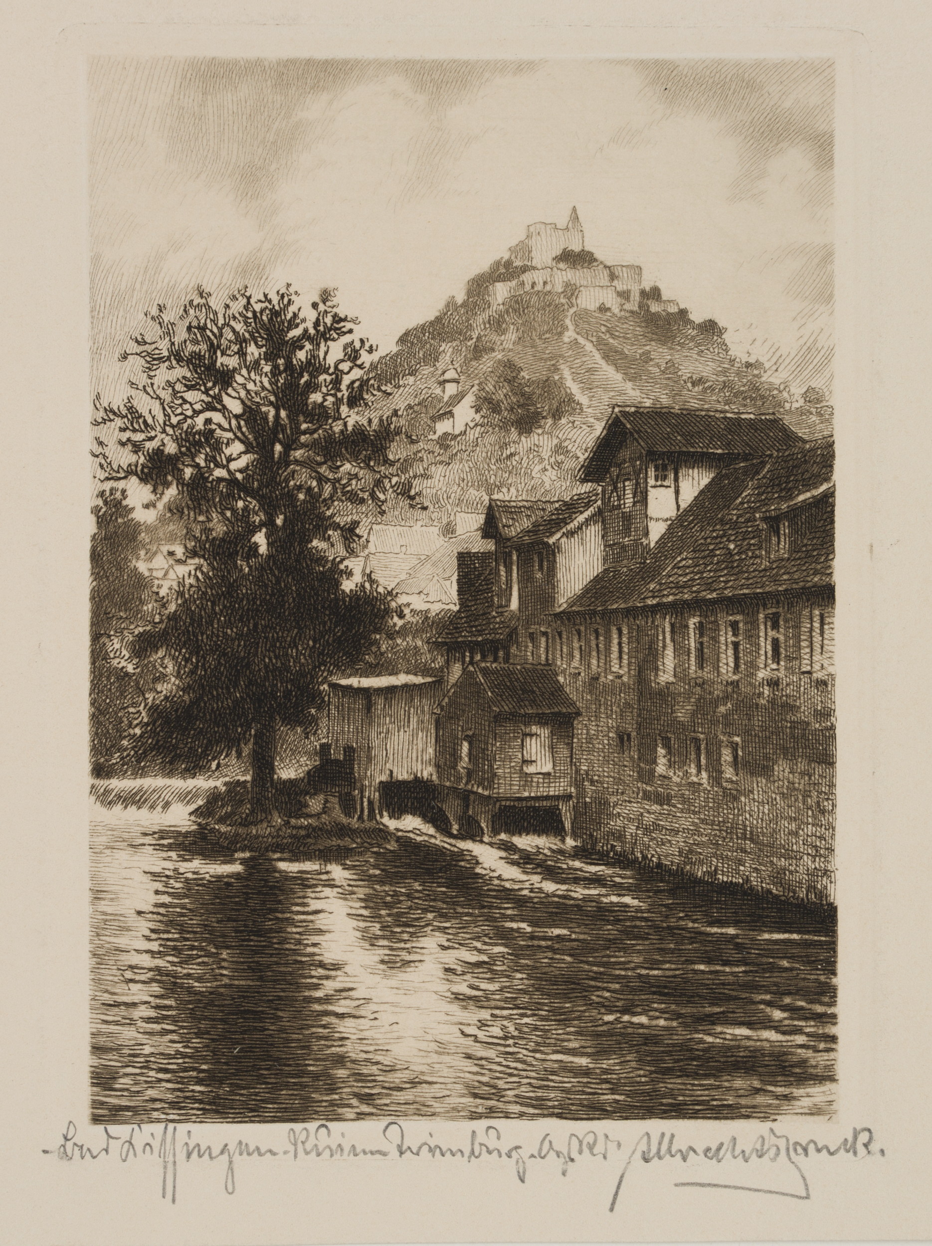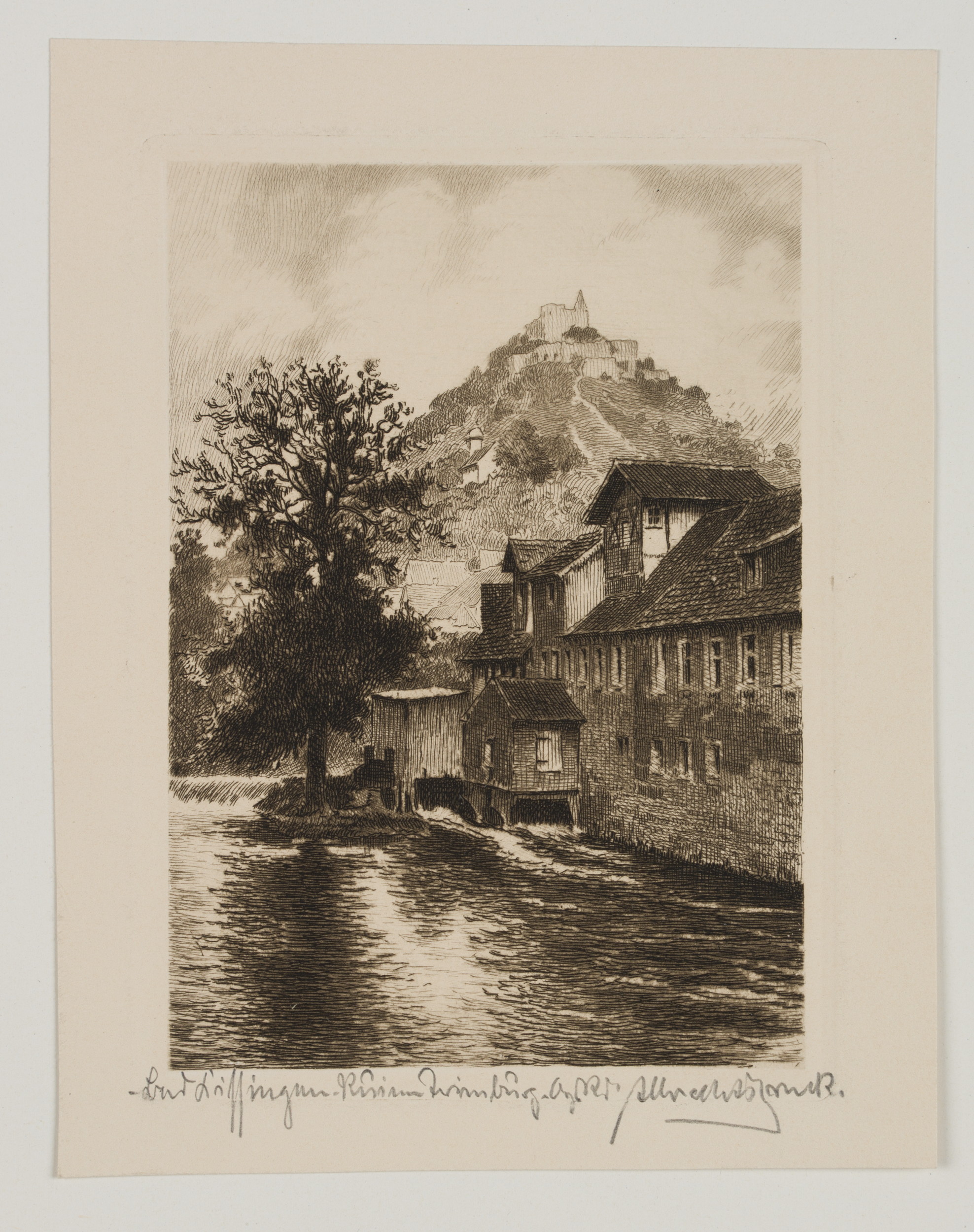 - Inscription: Lower right signed: “[?]”. At the lower part inscribed by the artist’s hand: “Bad Kissingen. Ruine Trimburg […]”.