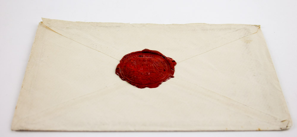 - Description: The envelope has two stamps on the front, as well as the stamp of the notary. The information about the will is neatly written on the envelope. The envelope is sealed. The seal is decorated with a heraldic eagle. The seal itself reads ‘Notar Bei. des Königl. Preuss. Oberlandesgericht zu Gelle’ & ‘Wilhelm Lütkemann’. The will is not present.