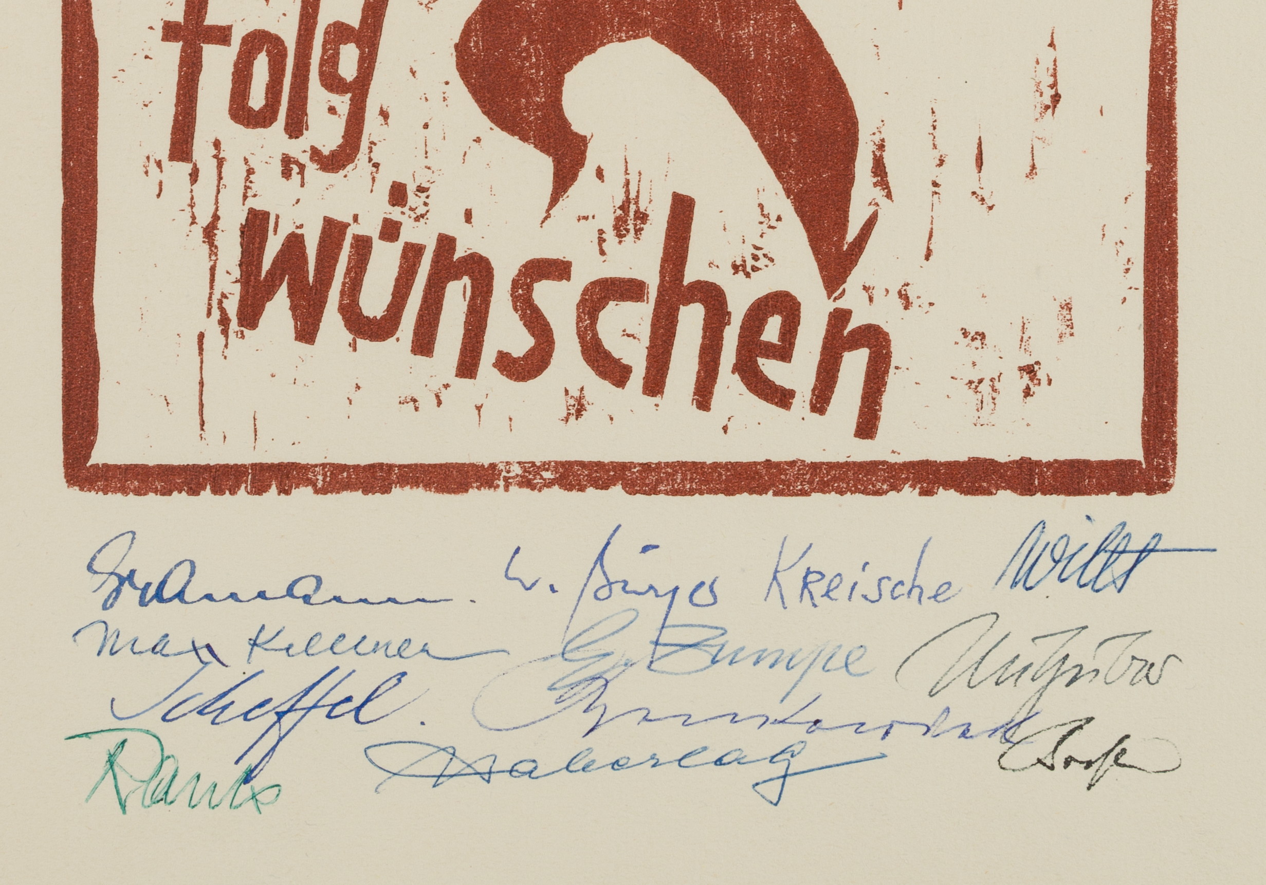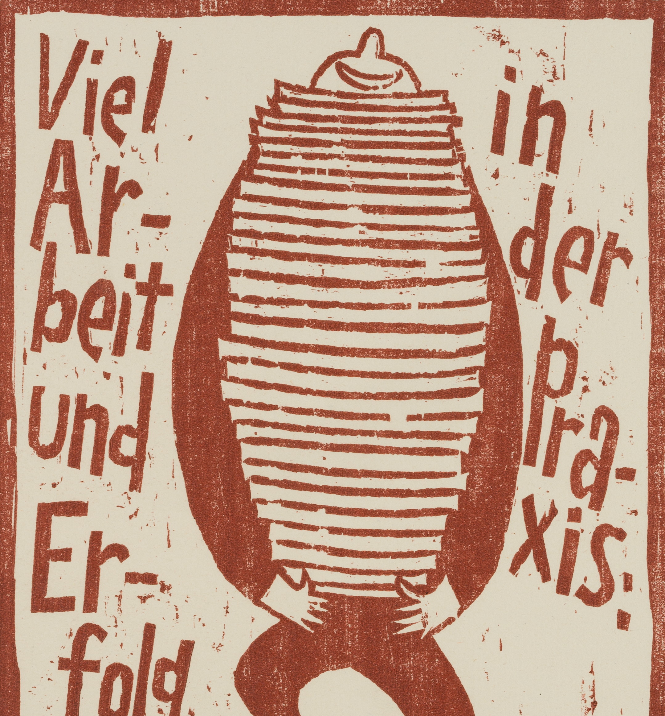 Unknown (20th century), Much work and success in practice, congratulation card for the foundation, , Woodcut