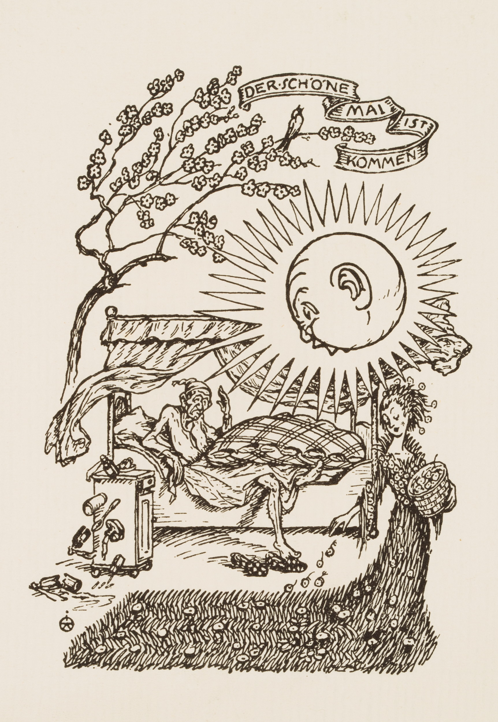 Unknown (20th century), Folk song illustration with spring awakening “The beautiful May has come”, , Lithography