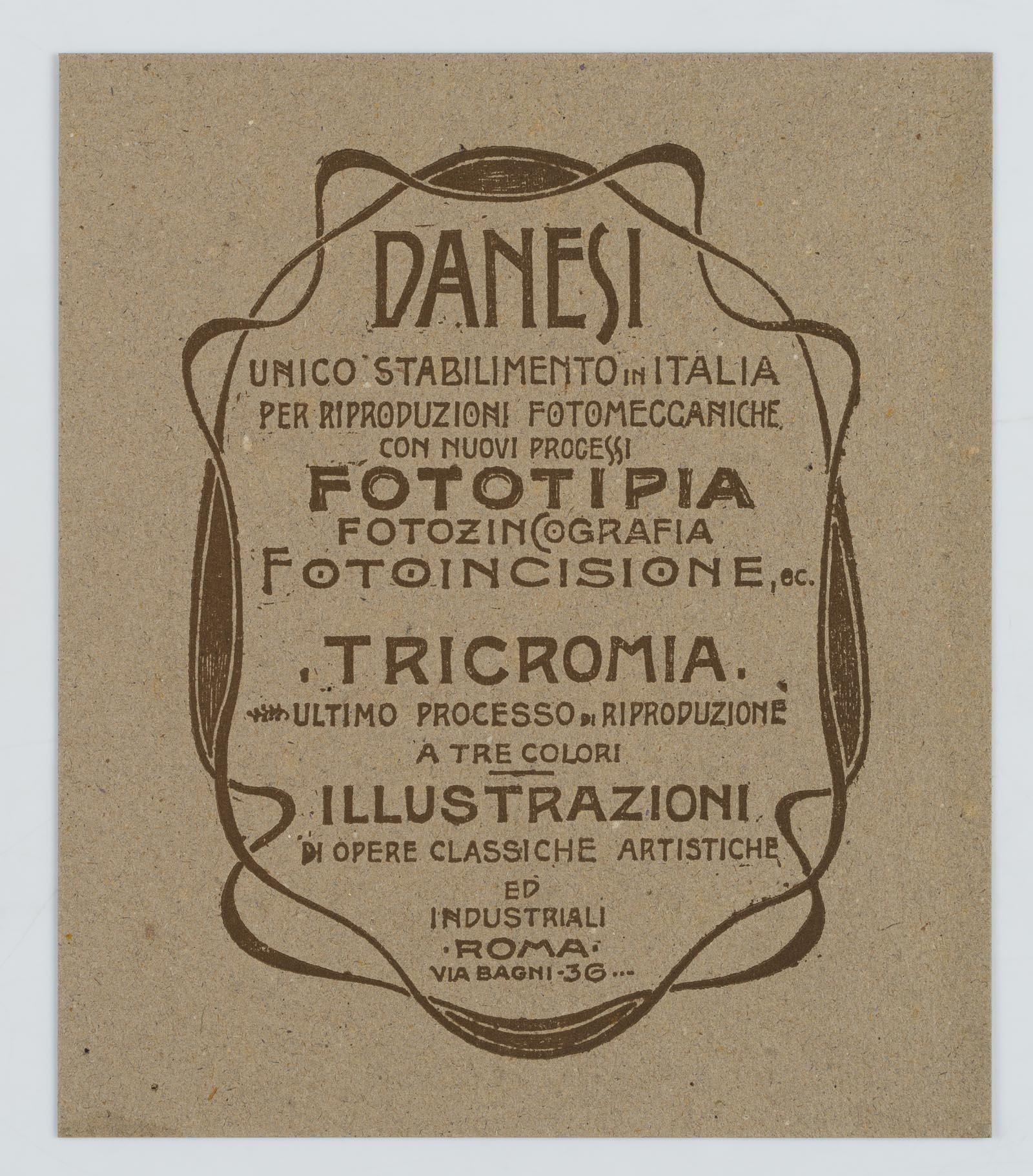 Unknown (20th century), Promotional card: DANESI, Rome, Italy, Studio for Reproduction, c. 1900, Woodcut