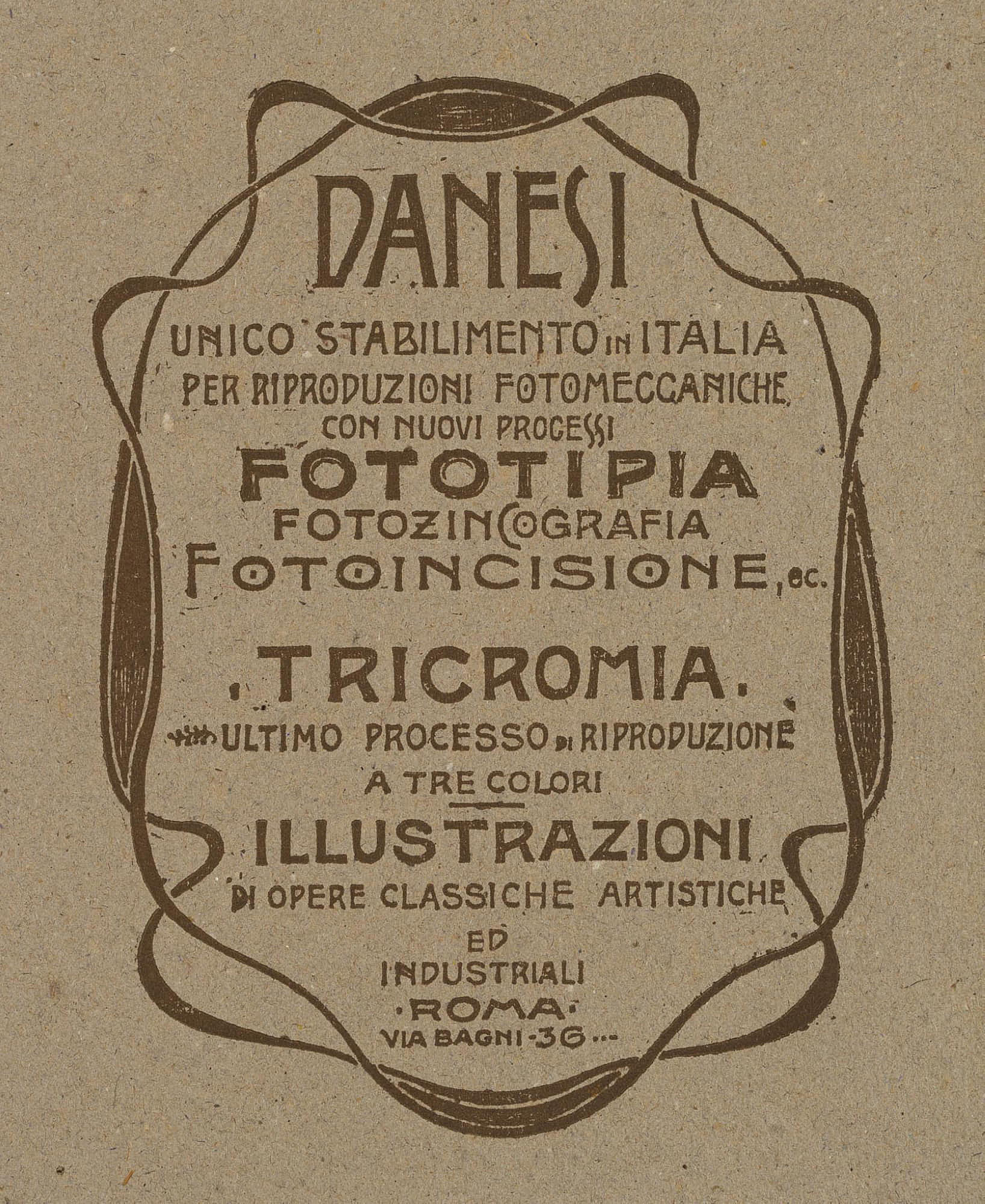 - Description: Firma Danesi in Rom, spezialisiert auf “Fototipia, Fotozinografia, Fotoincisione ec.”.