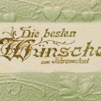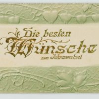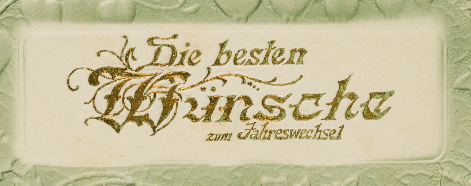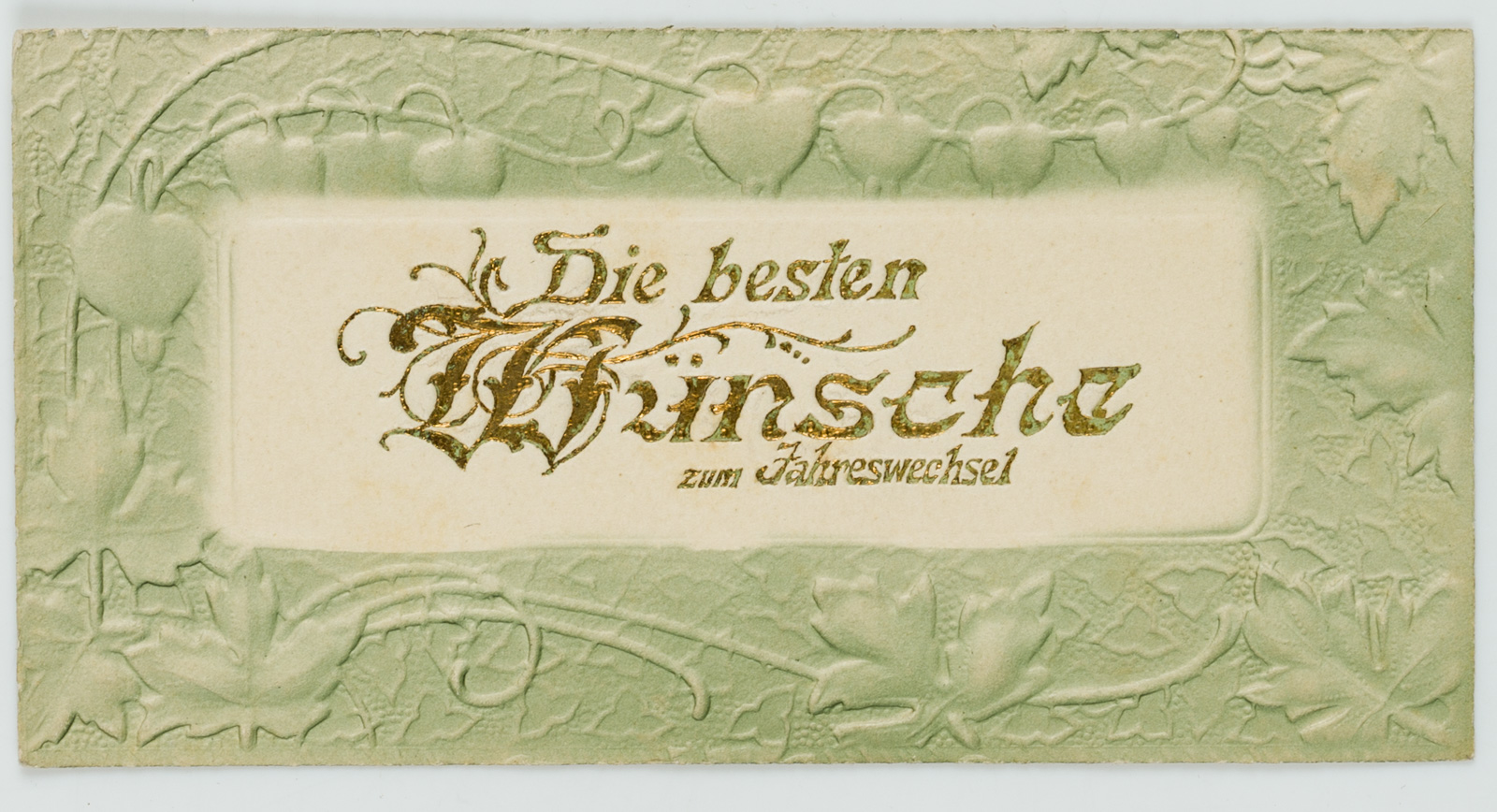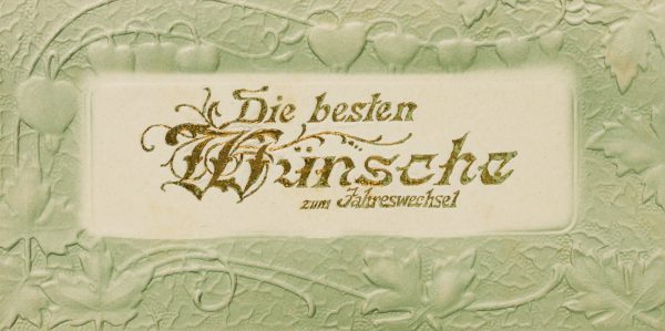 Unbekannt (20. Jahrhundert), Wünsche zum Jahreswechsel mit floralem Ornament Rahmen, Prägedruck, um 1900, Glückwunschbillet