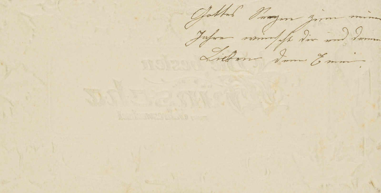 - Beschreibung: Verso handschriftliche Glückwünsche mit Tinte.