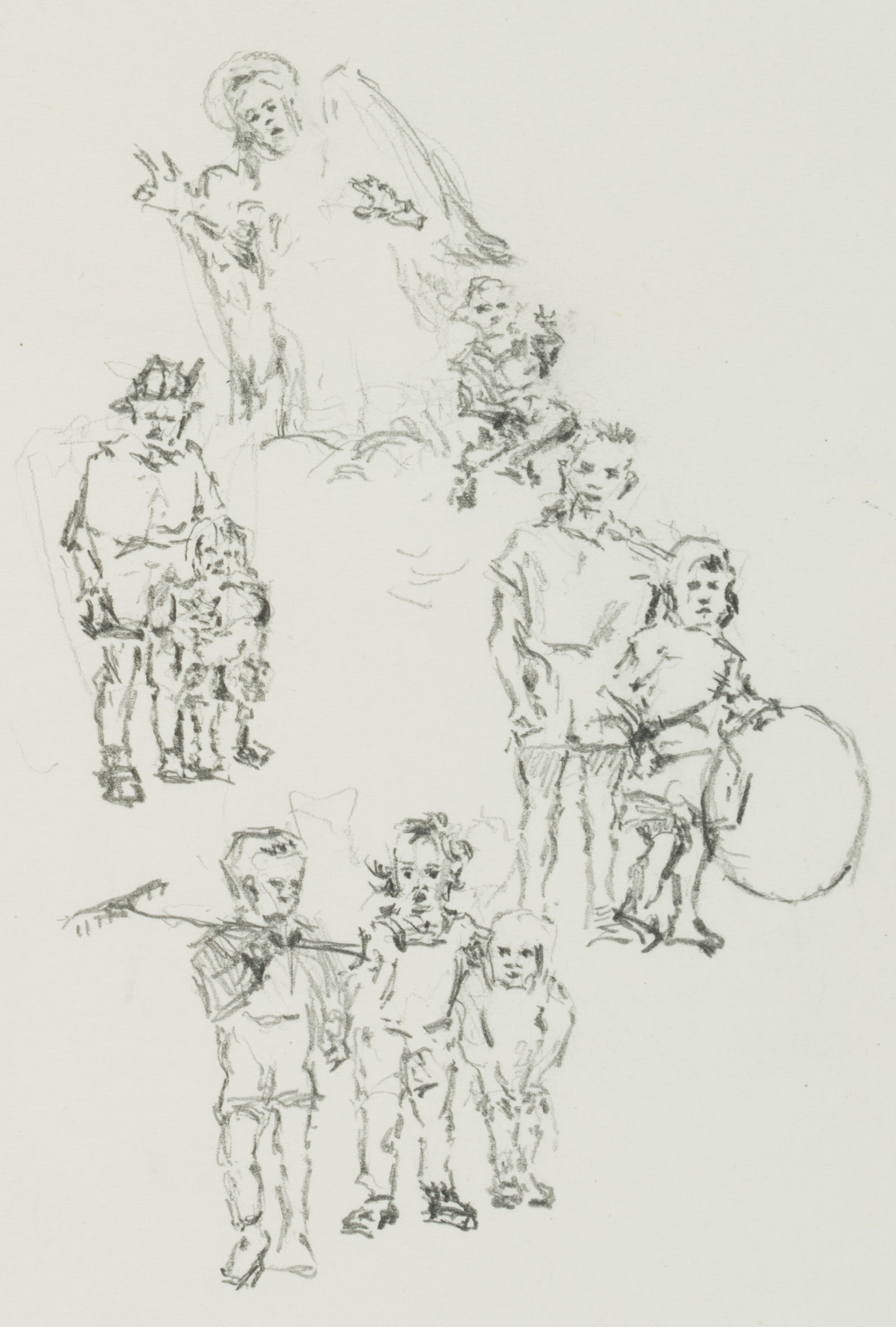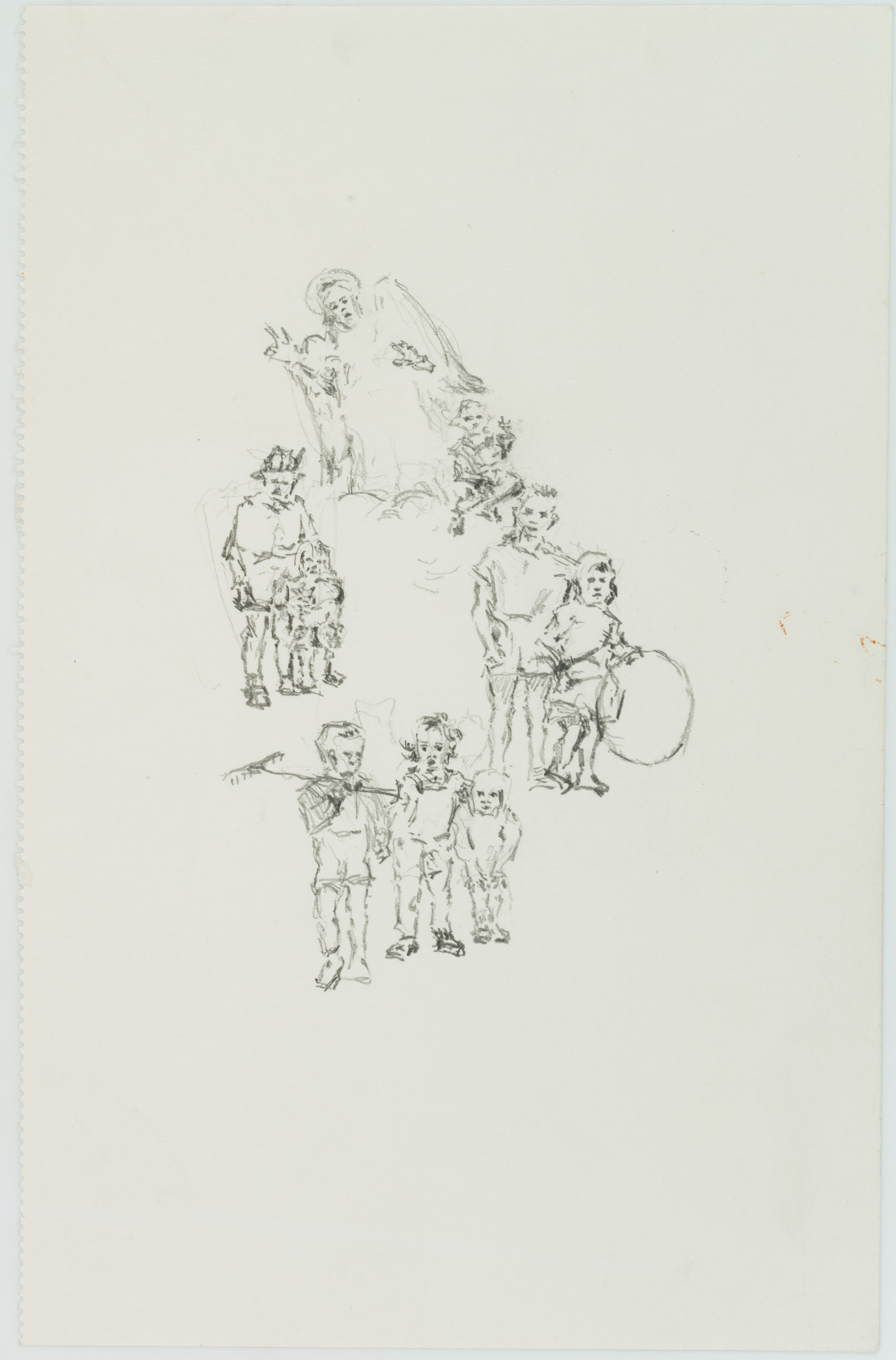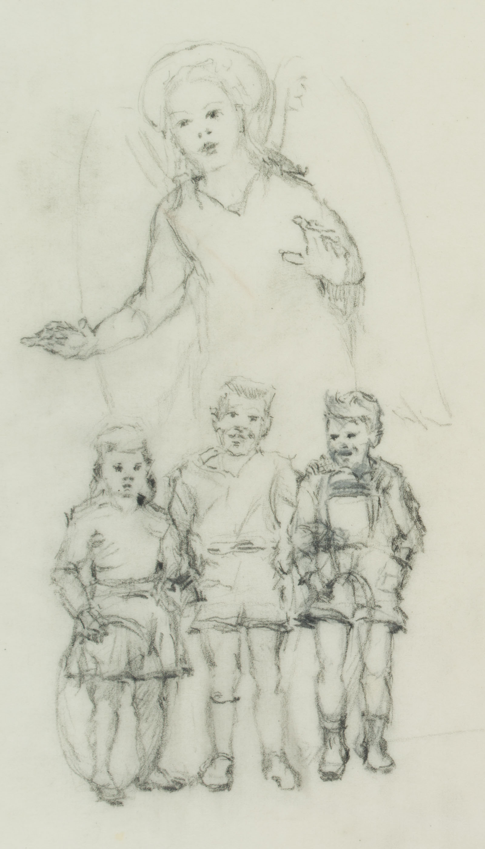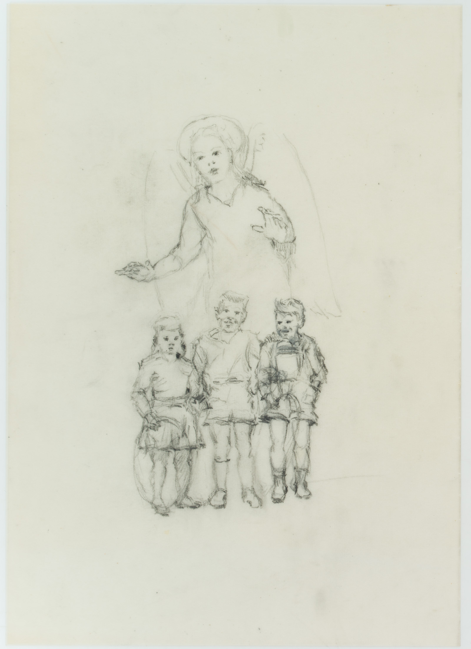 Unknown (20th century), Two guardian angels protect the children, c. 1940, Pencil