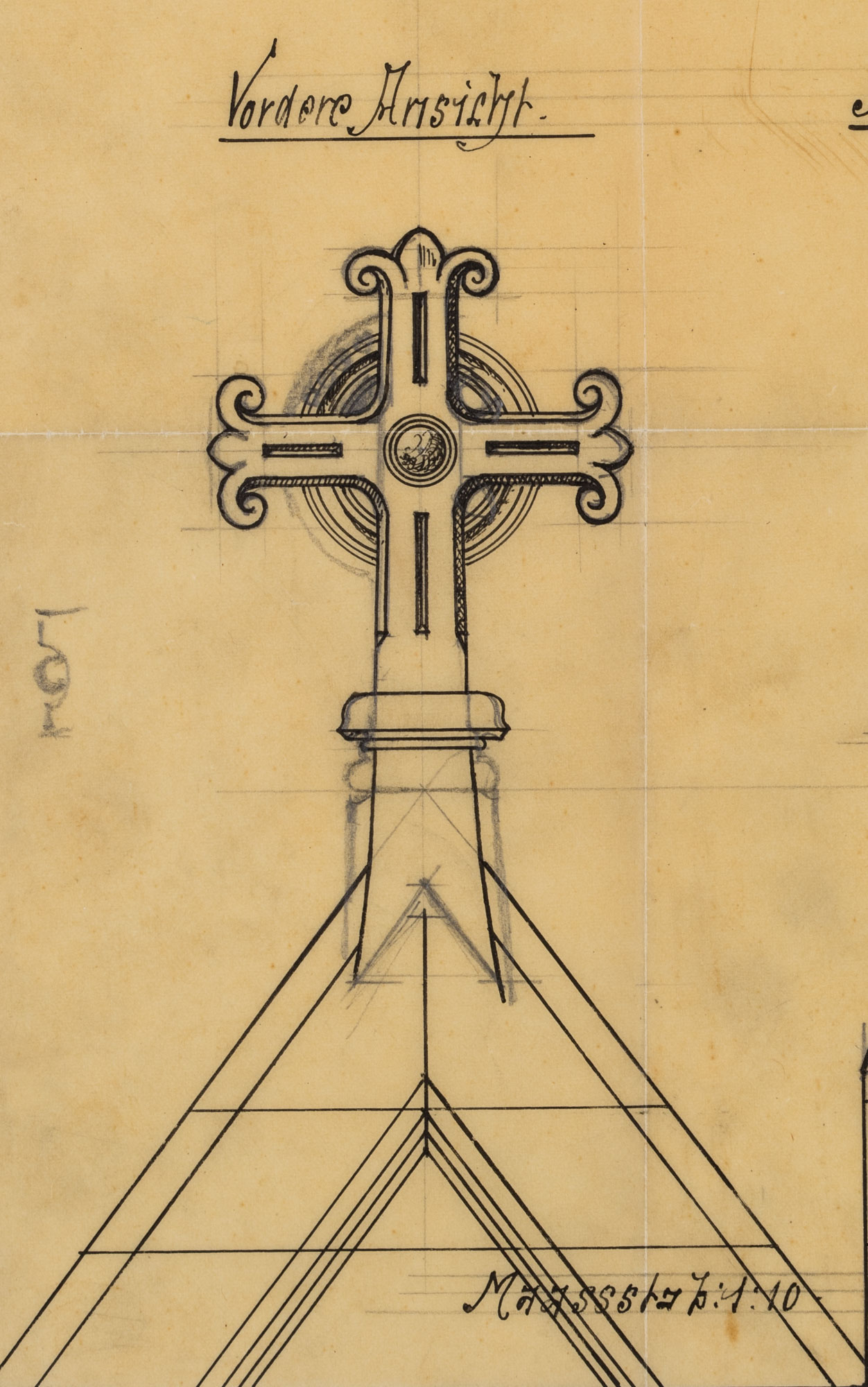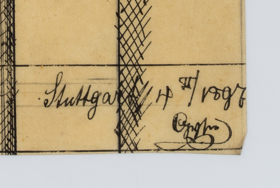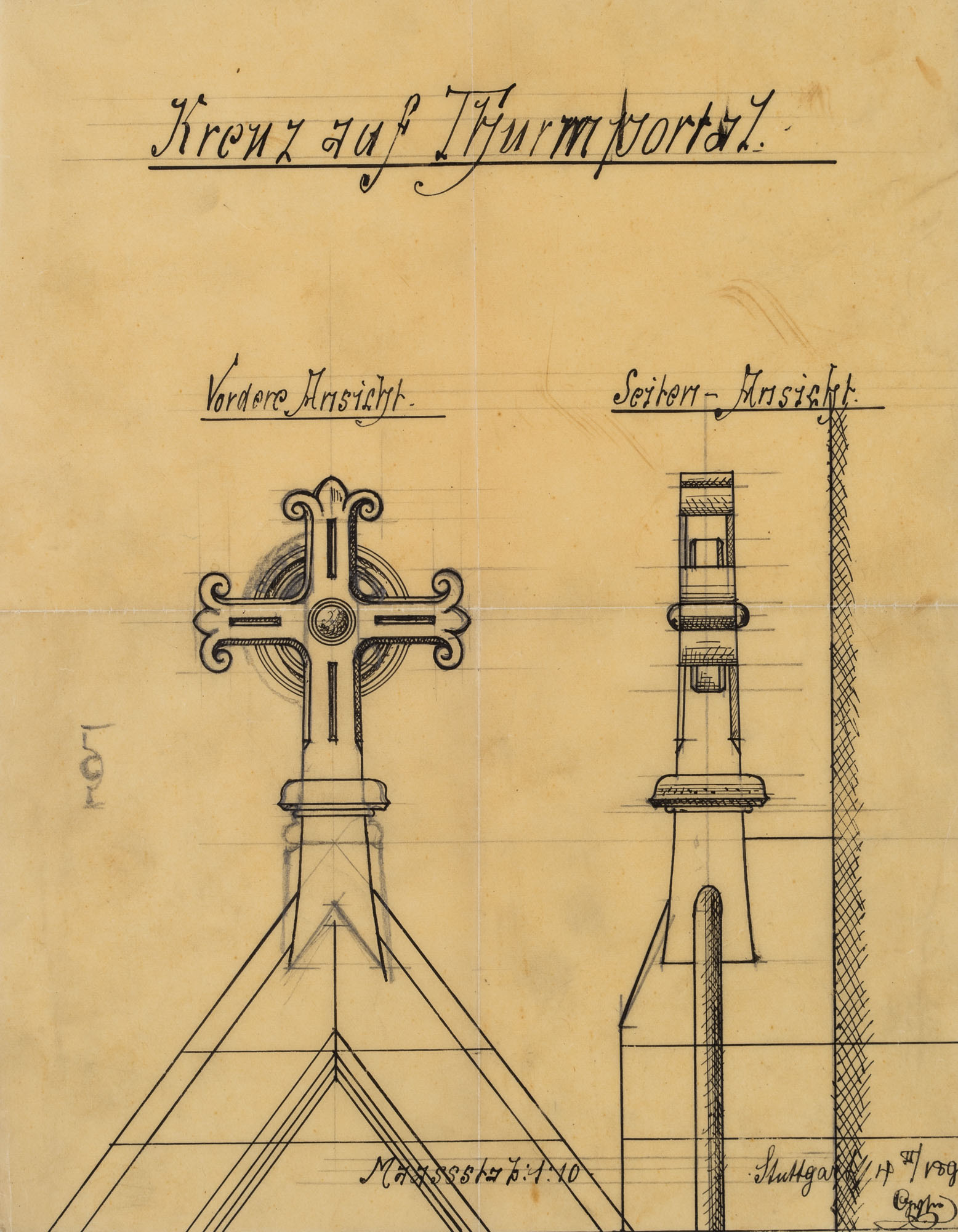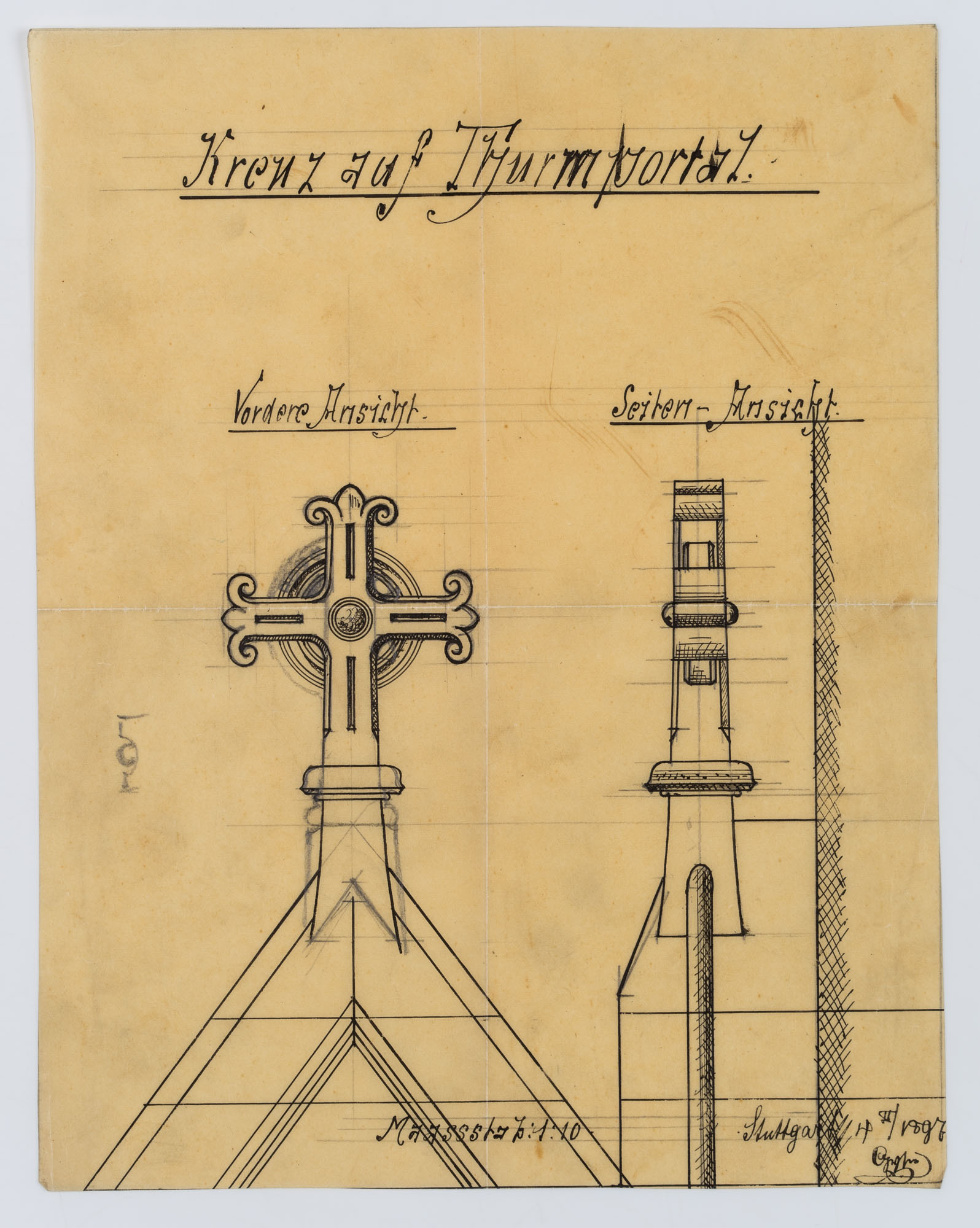 • Description: Inscribed “Kreuz auf Thurmportal | Maassstab: 1: 10 | Stuttgart”, signed and dated illegibly at lower right “97[?]”.