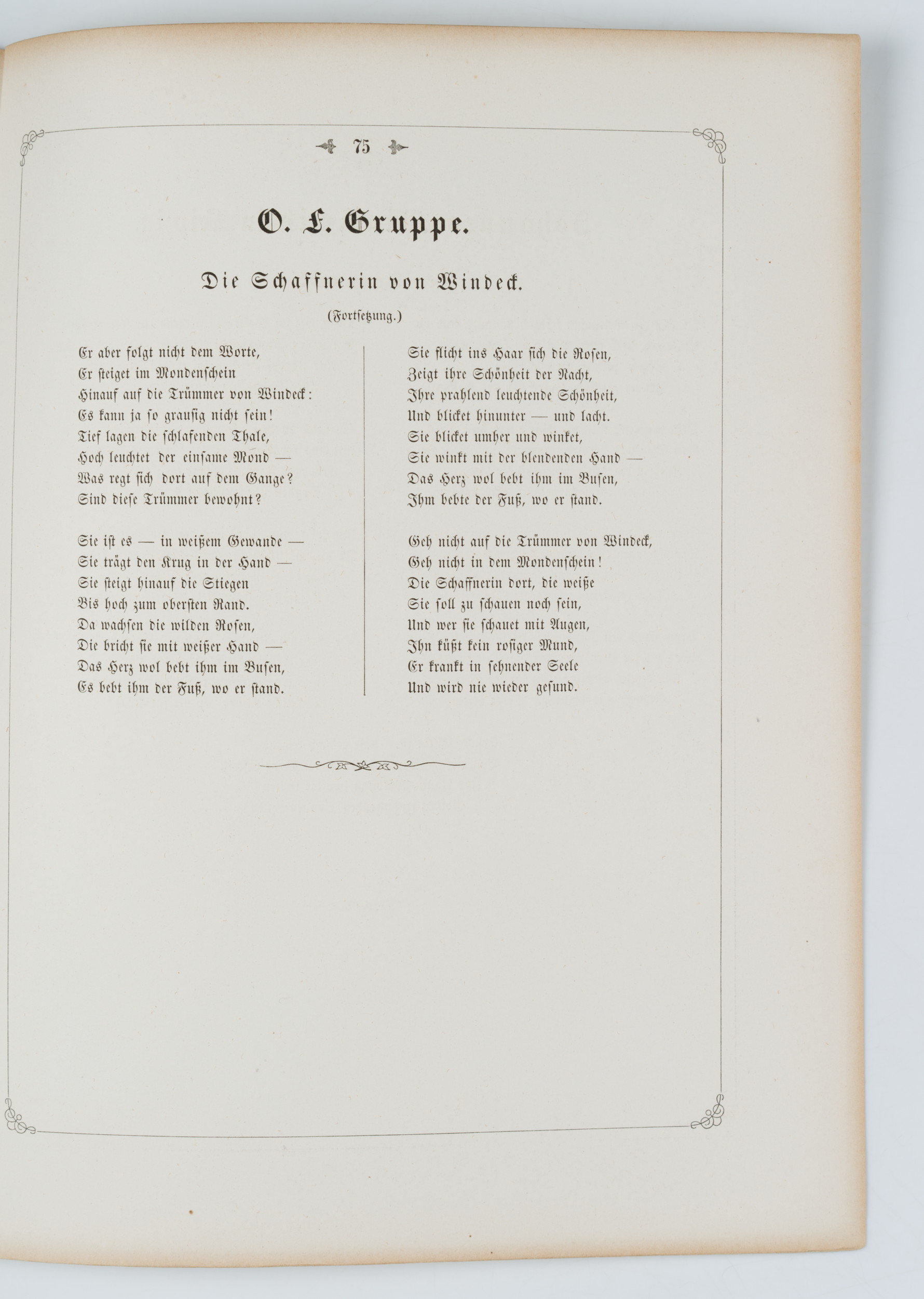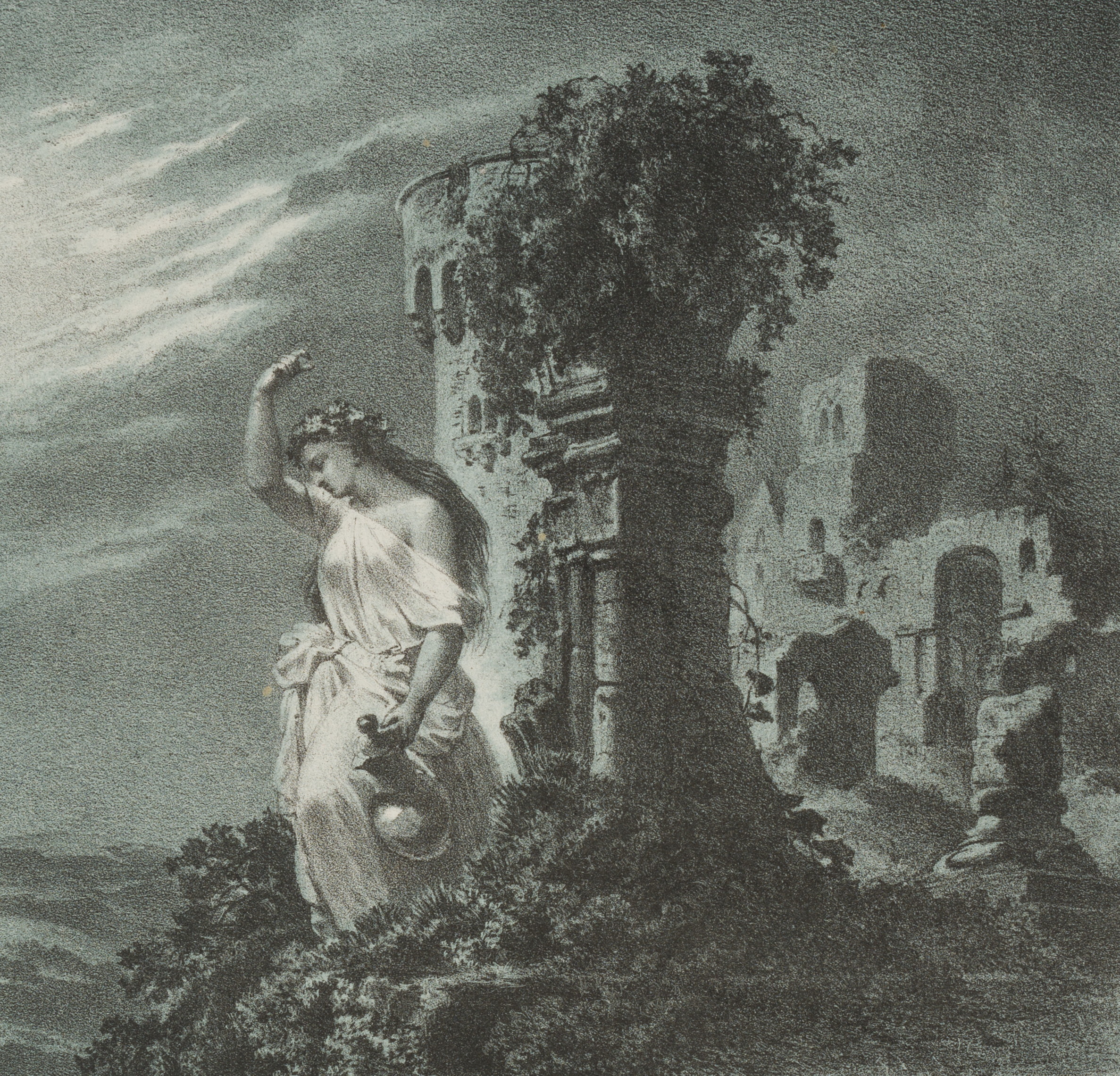 - Bezeichnung: Unten rechts im Druck bezeichnet: “Die Schaffnerin von Windeck. Seh nicht auf die Trümmer von Windeck, Seh nicht in dem Mondenschein: [..]”.