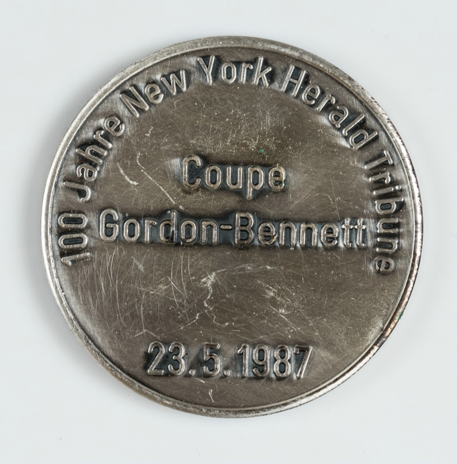 Unbekannt (20. Jahrhundert), Erinnerungsmünze 100 Jahre NY Herald Tribune, Coupe Gordon-Bennett, 1987,