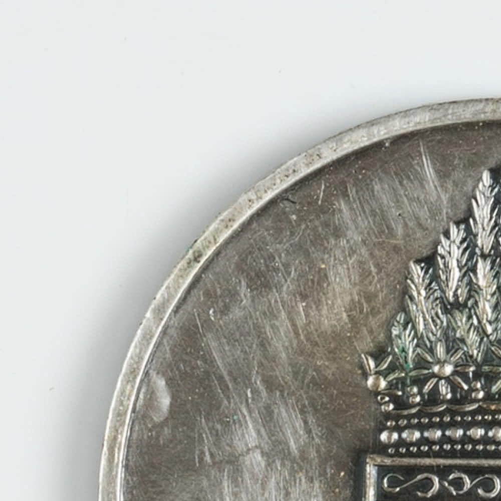 - Zustand: Guter Zustand. Etwas bestossen und stellenweise verkratzt. Die Versilberung löst sich in kleinen Blasen, ist aber stabil.