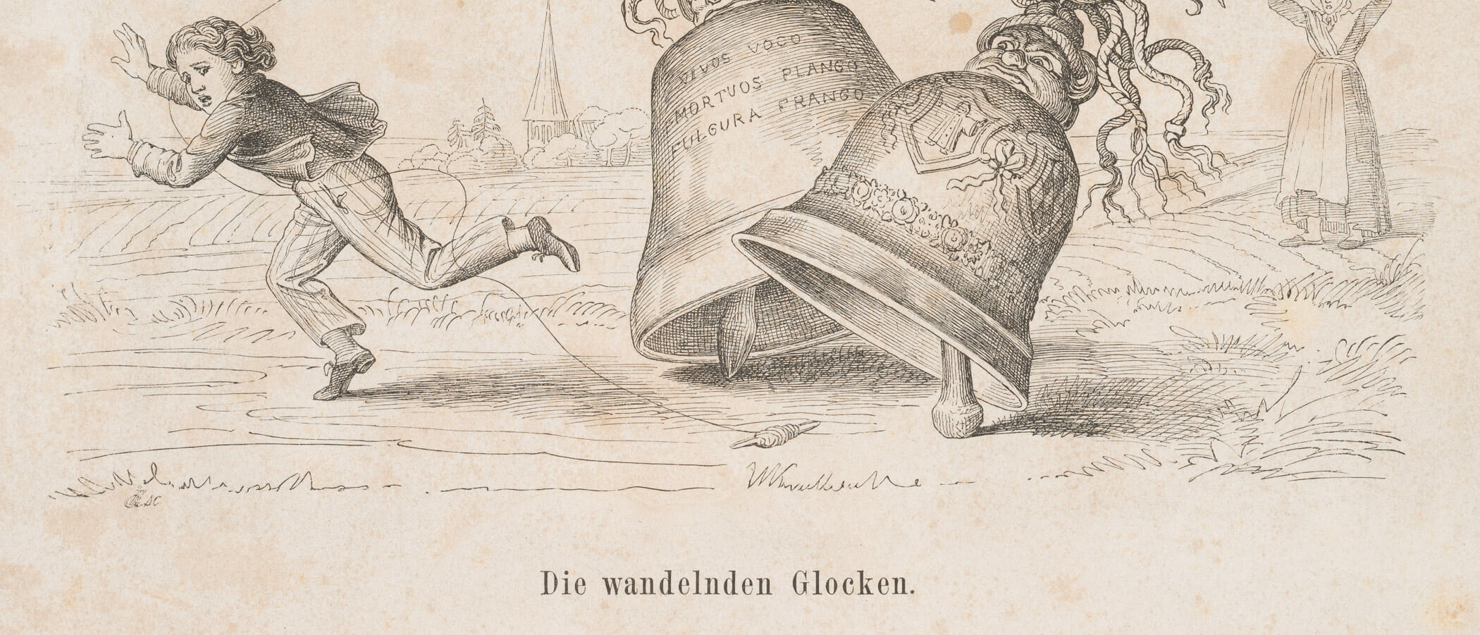 - Bezeichnung: Unten mittig im Druck bezeichnet: “Die wandelnden Glocken”.